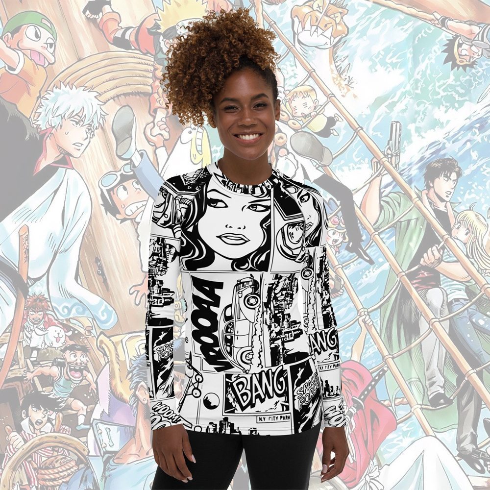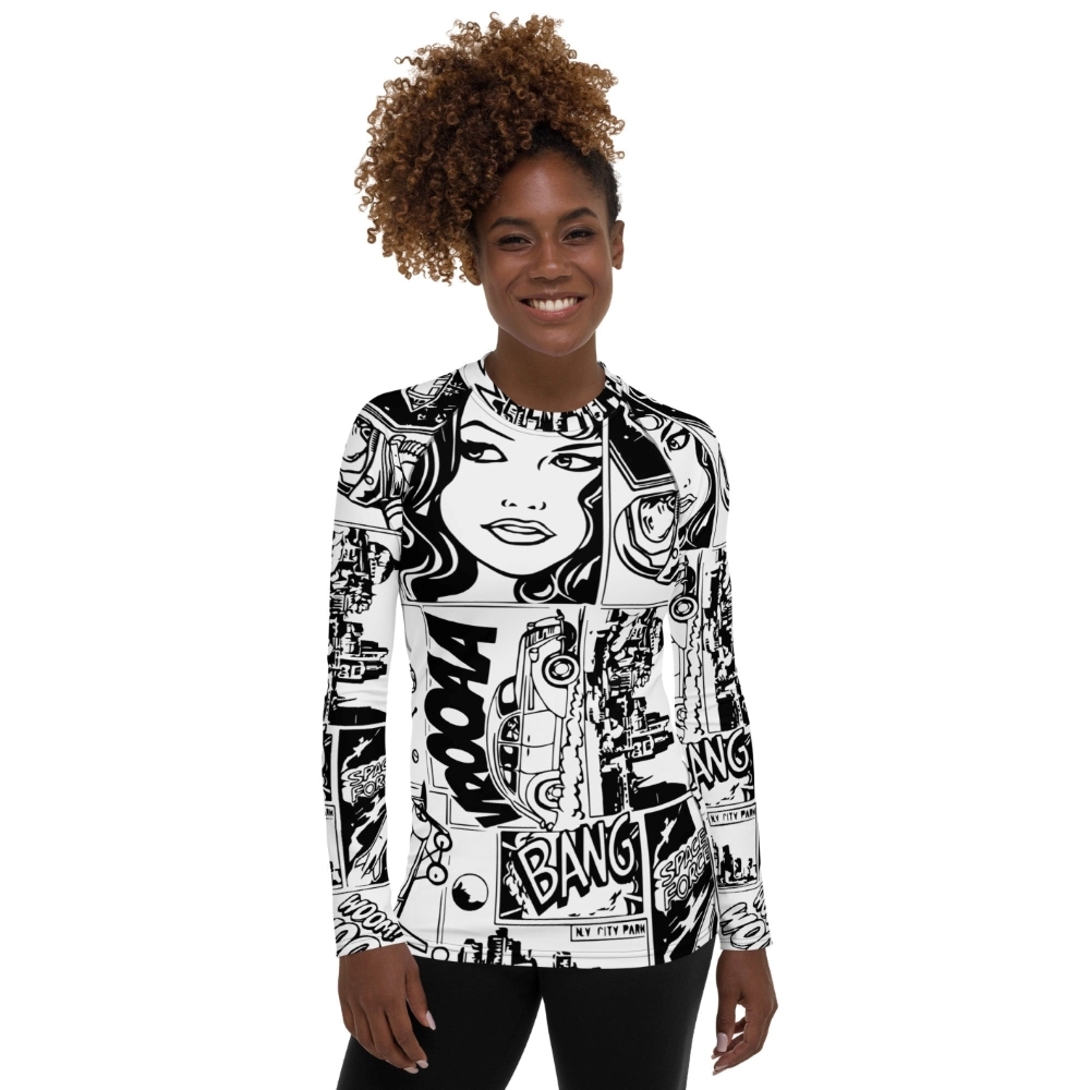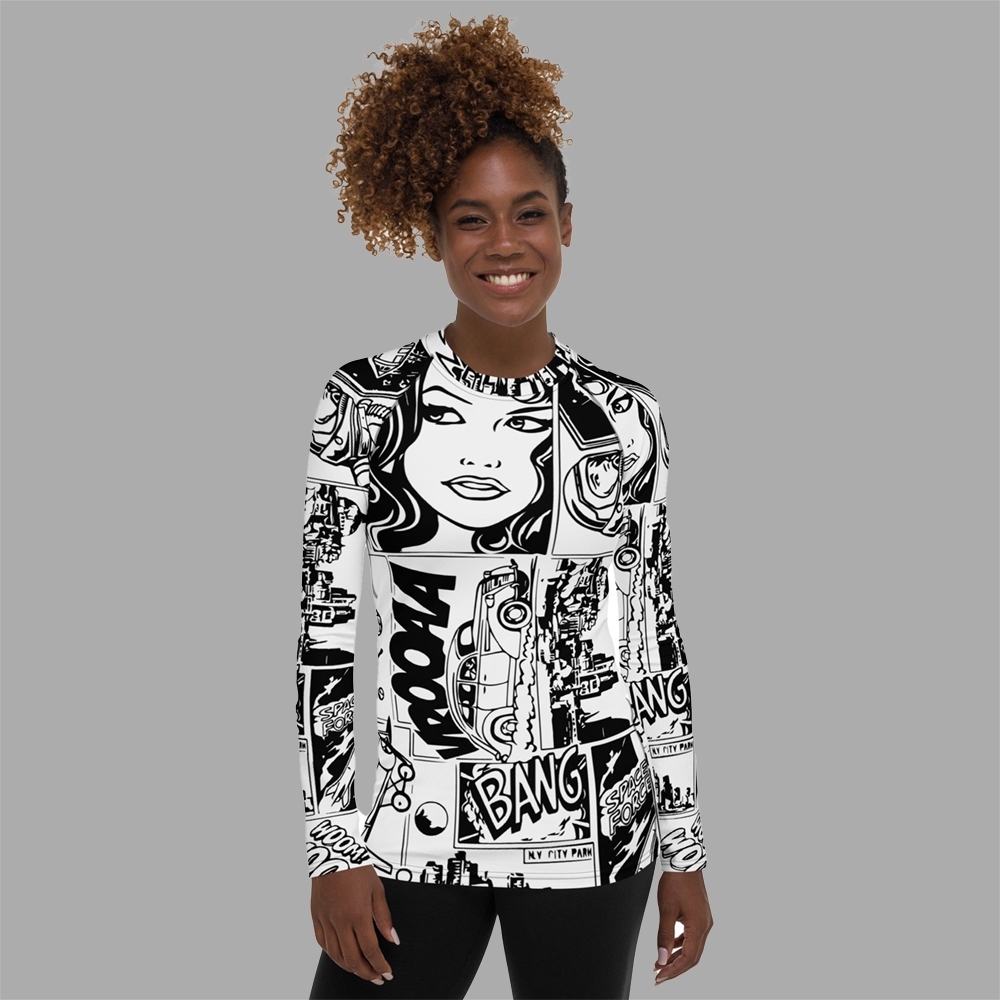 Black And White Comic Book Women Long Sleeve Compression Shirt