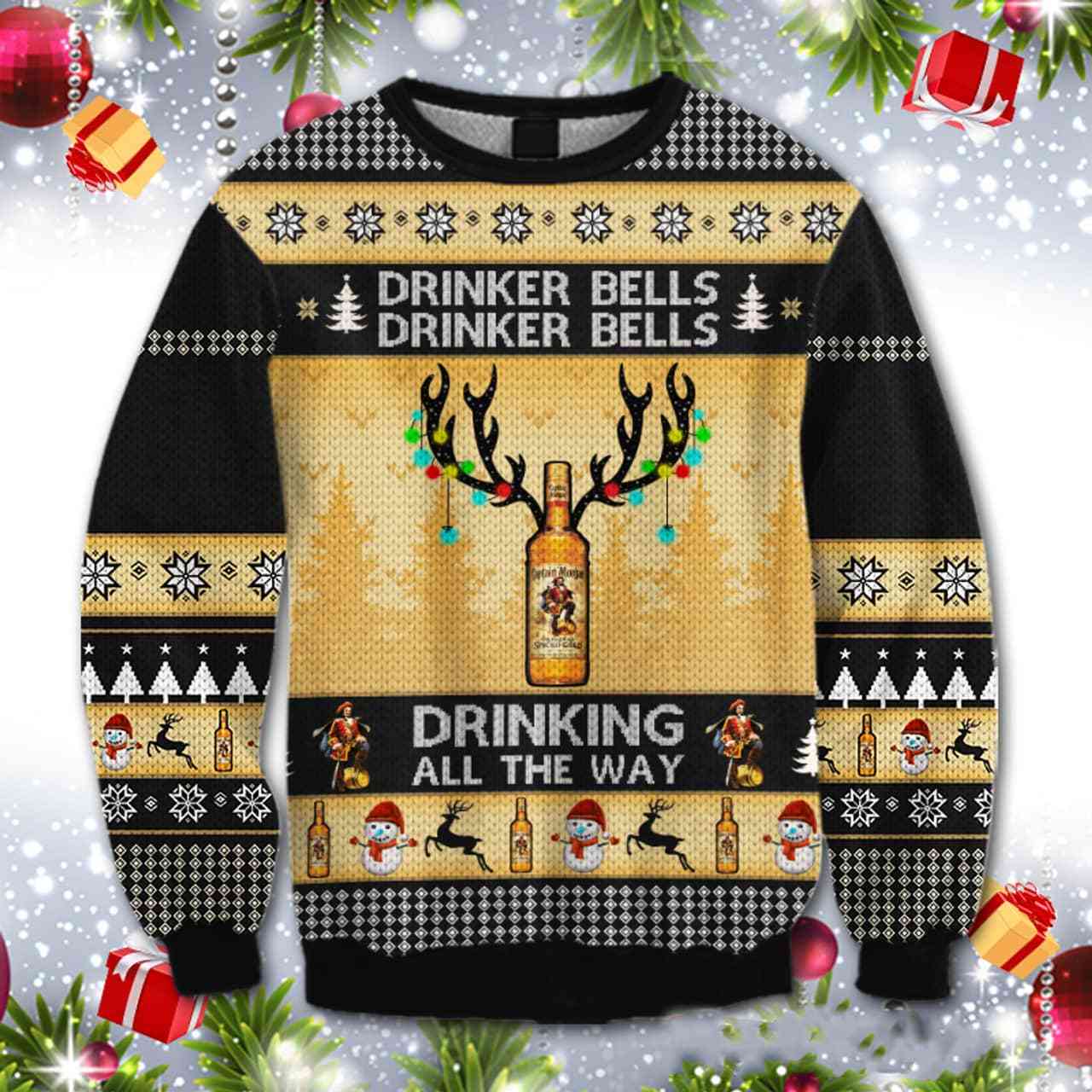 Captain Morgan Drinker Bells Ugly Christmas Sweatshirt Holiday Gift