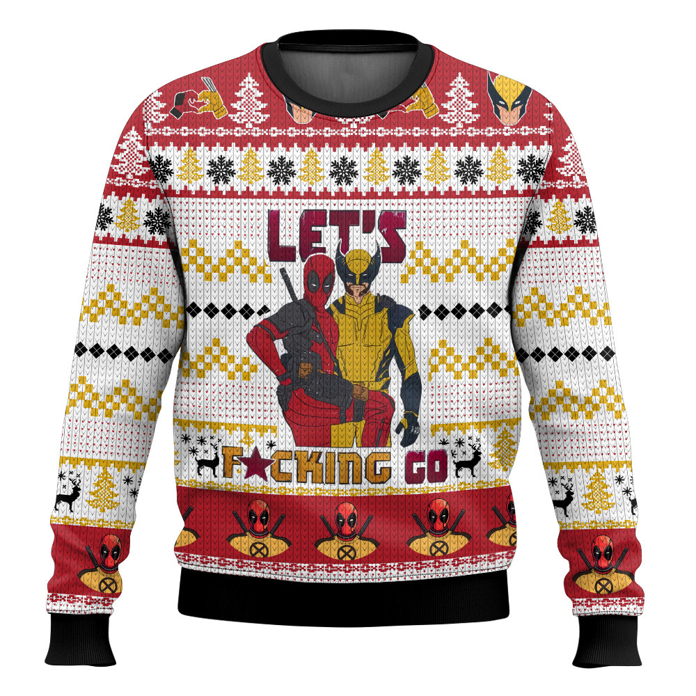 Lets Go Deadpool Wolverine Ugly Christmas Sweatshirt