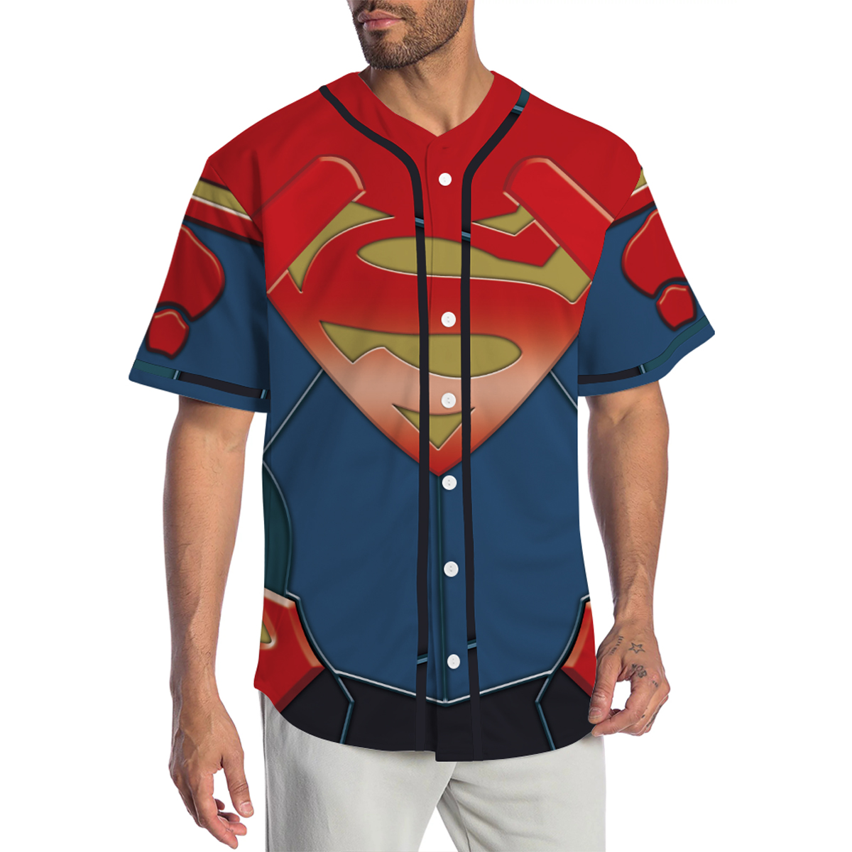 Superherou Sperboy Black Symbol Blue Red Suit Baseball Jersey