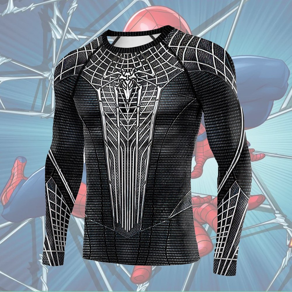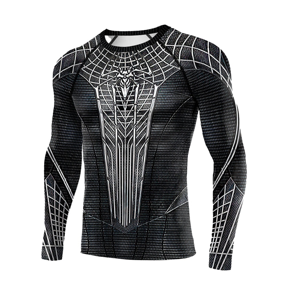 Black Superhero Spider Man Long Sleeve Compression Shirt