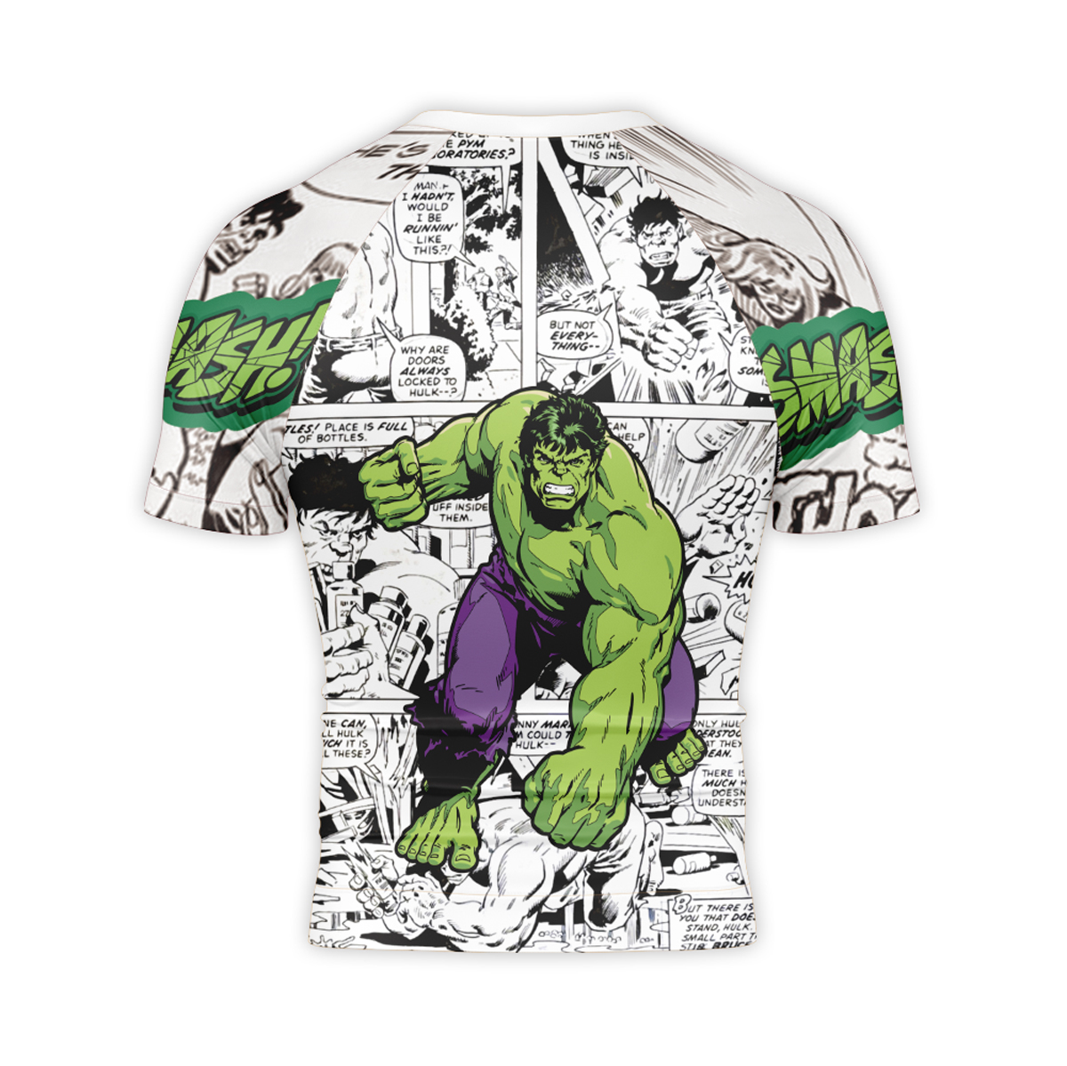 Marvel Hulk White Comics Short Sleeve Compression Shirt