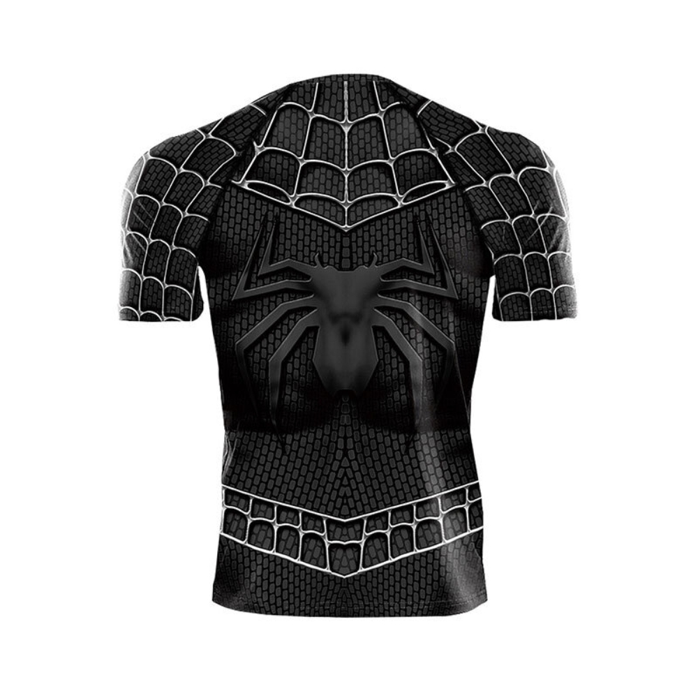 Marvel Superhere Black Spider Man Short Sleeve Compression Shirt