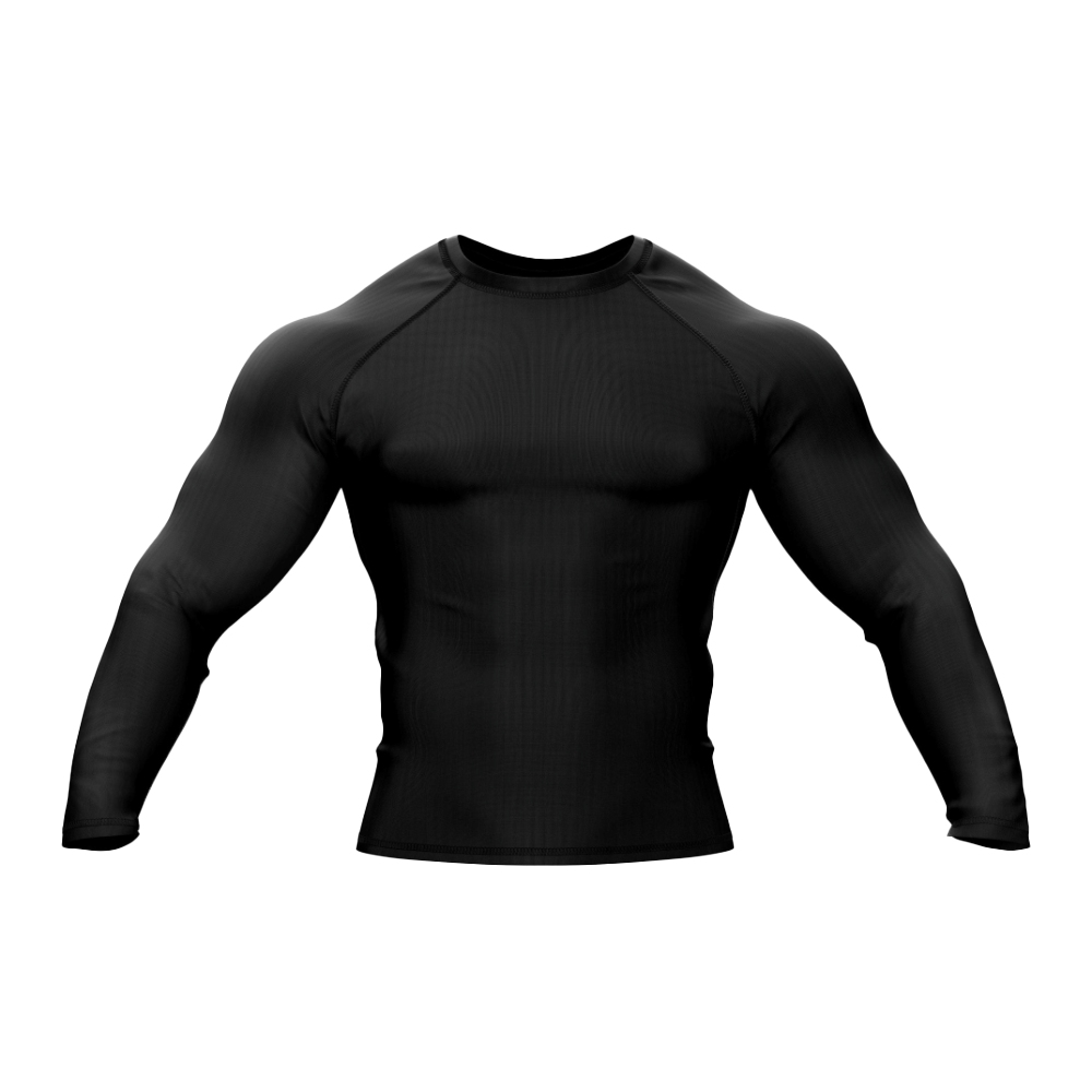 Black Basic Martial Art Men Long Sleeve Compression Shirt