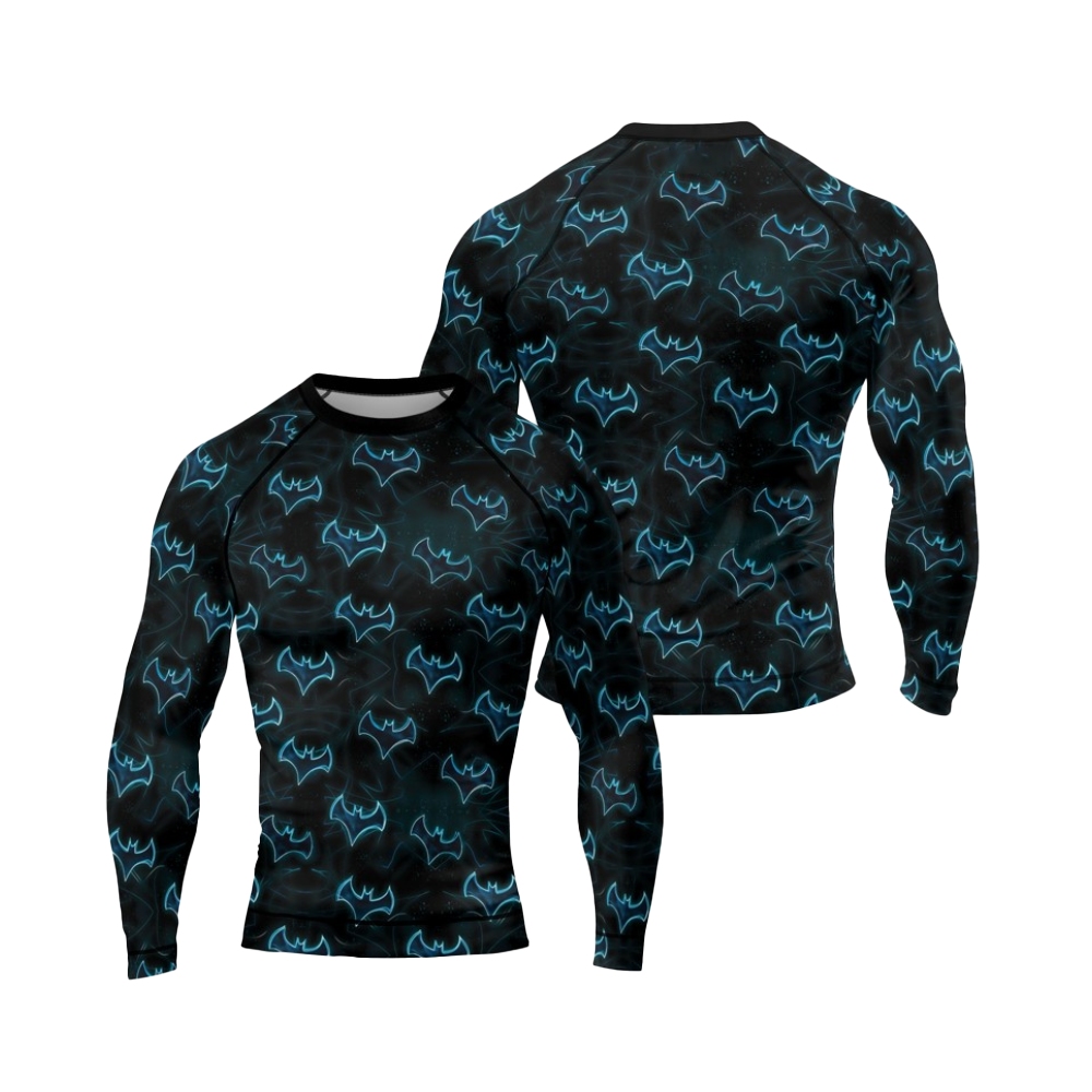 Blue Night Bat Pattern Mens Long Sleeve Compression Shirt