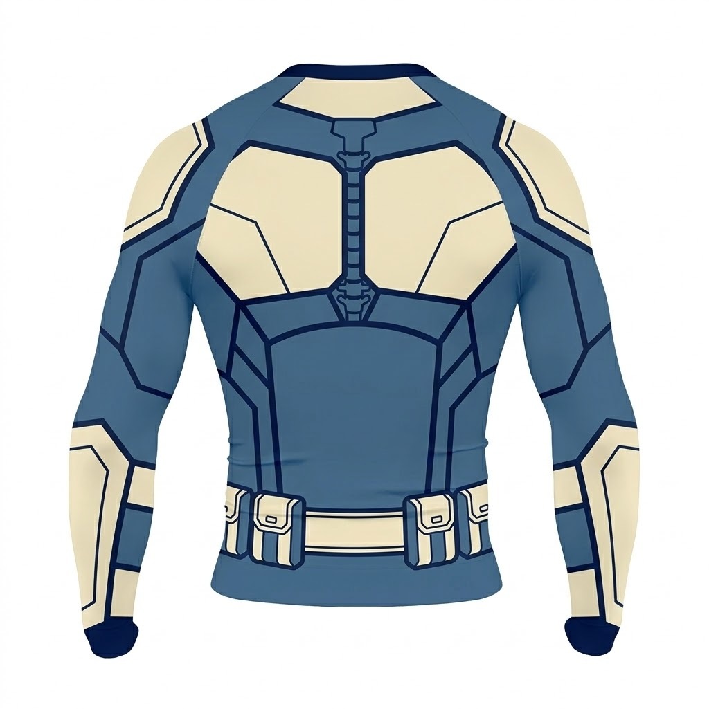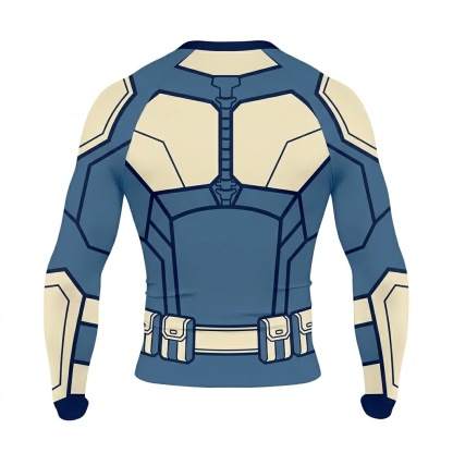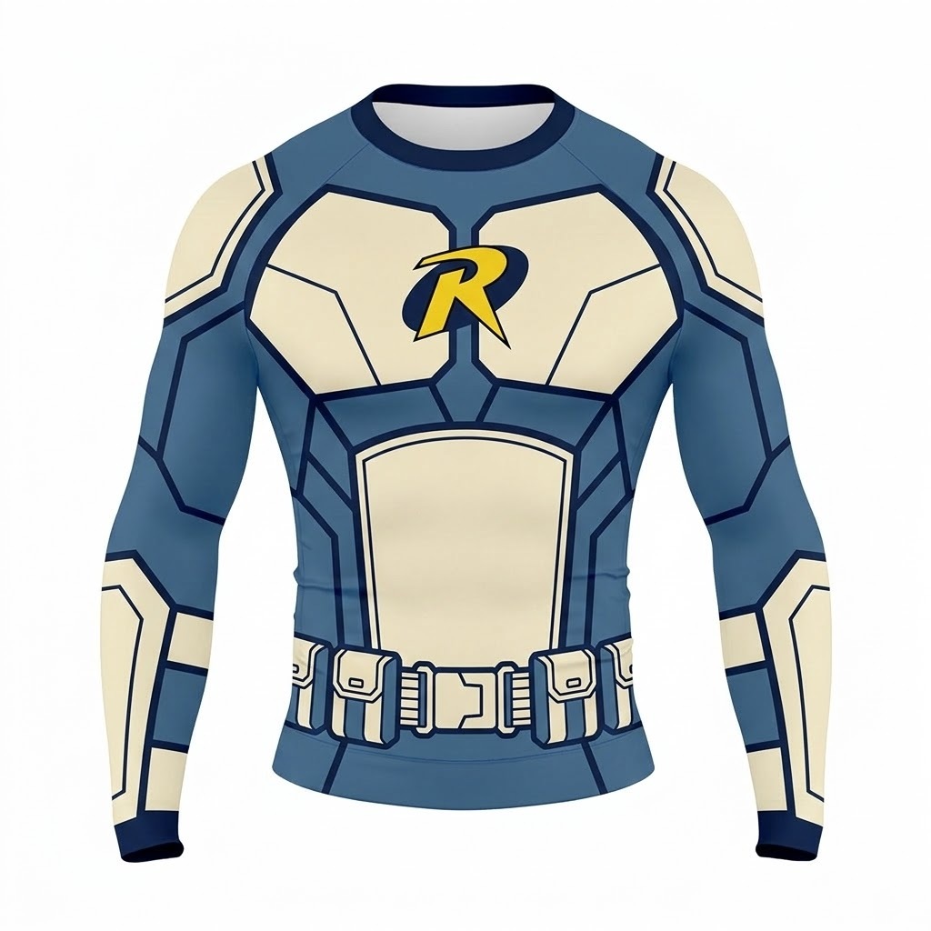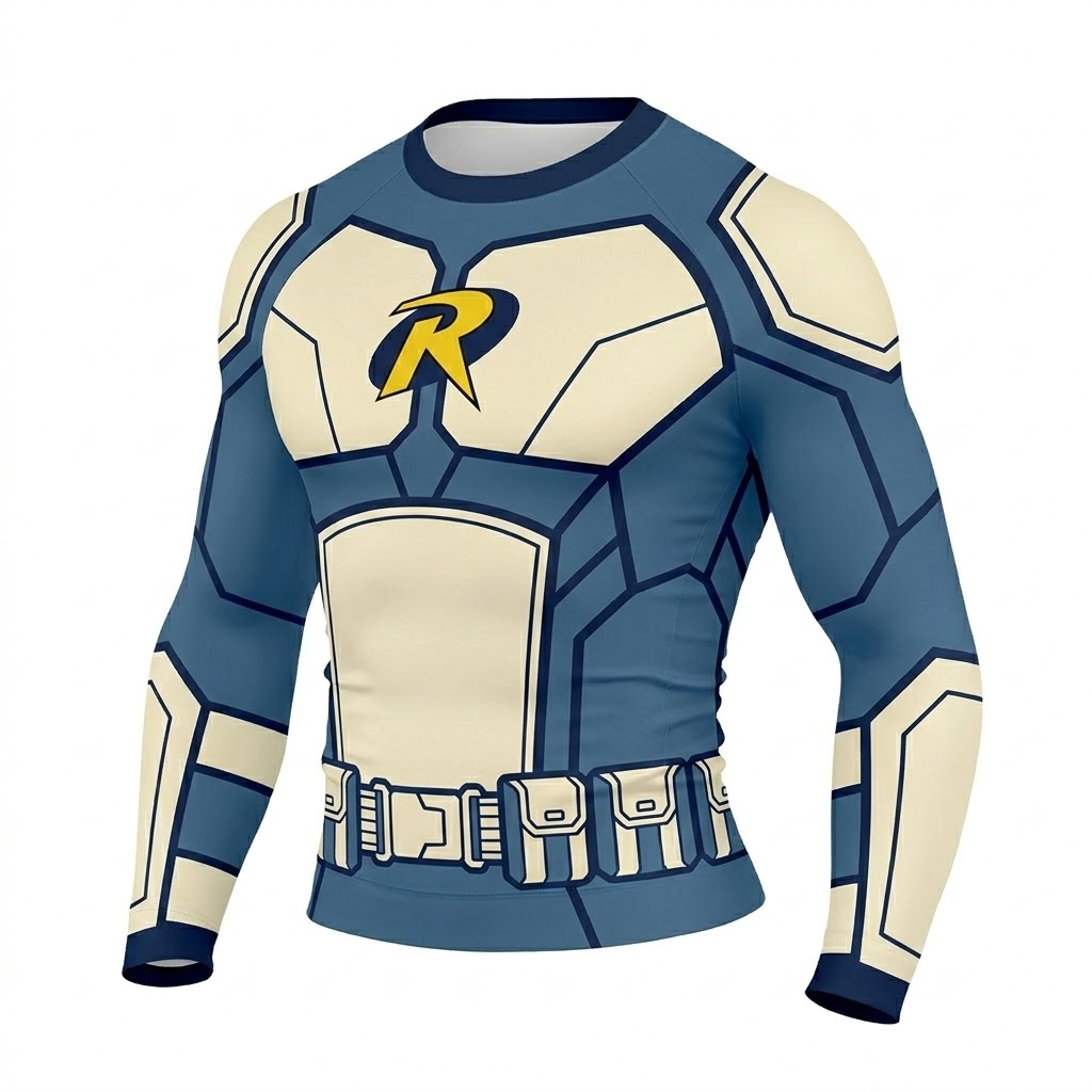 Superhero Robin Stealth Style Blue White Long Sleeve Compression Shirt