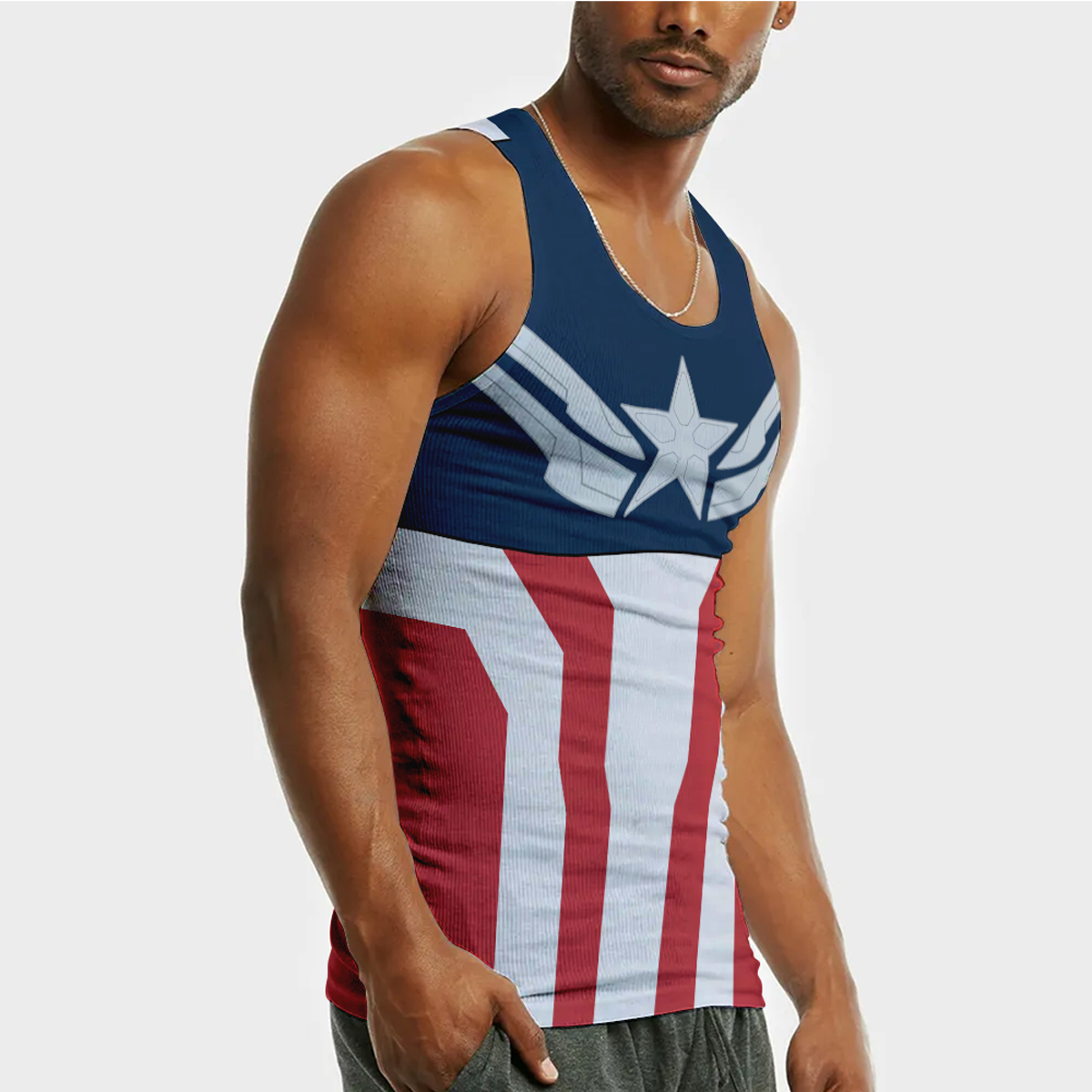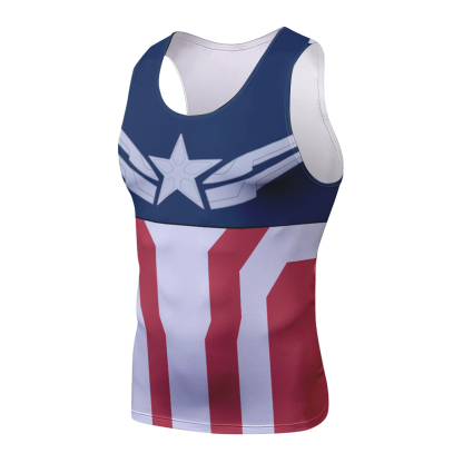 Superhero Captain America Red Blue Design Sleeveless Compression Shirt