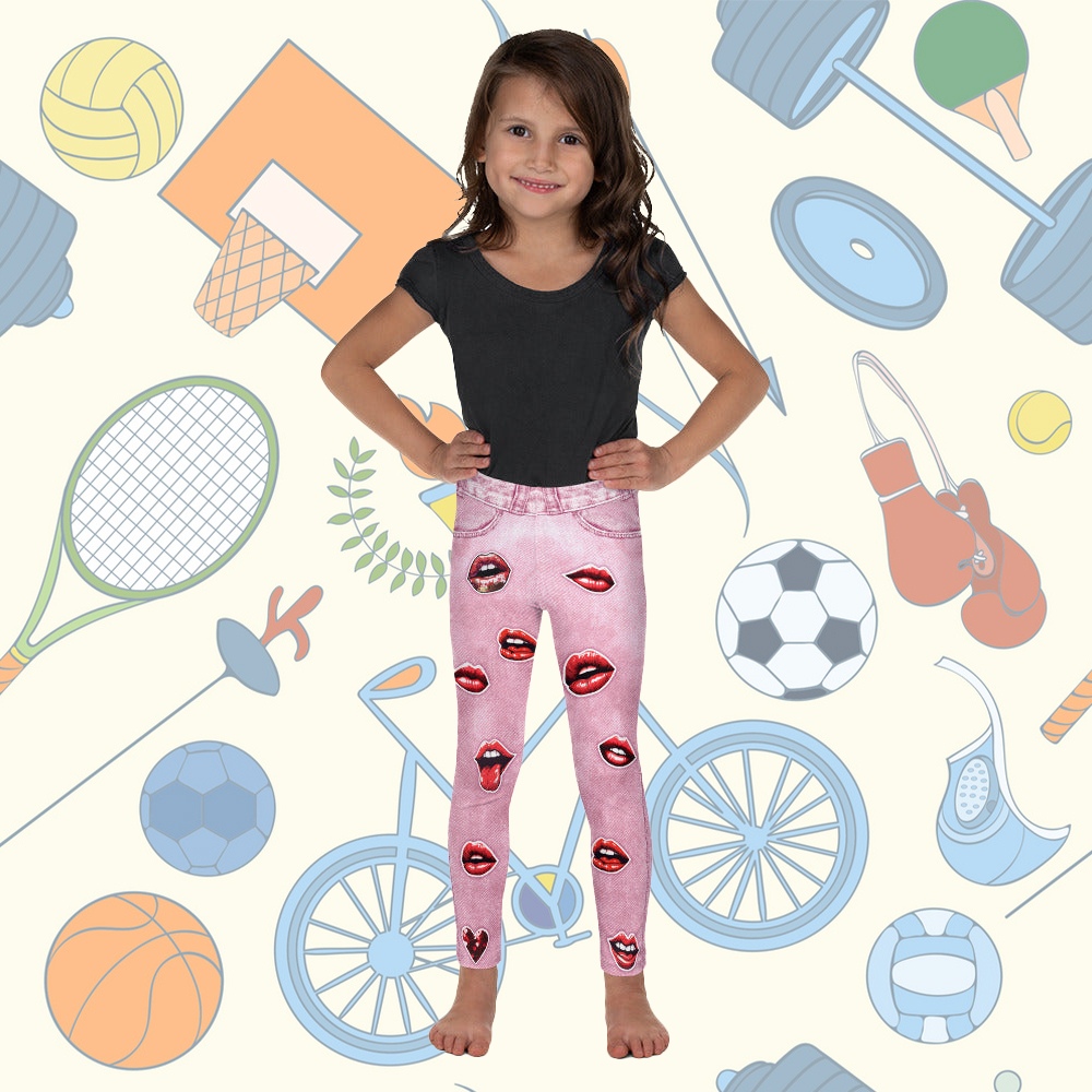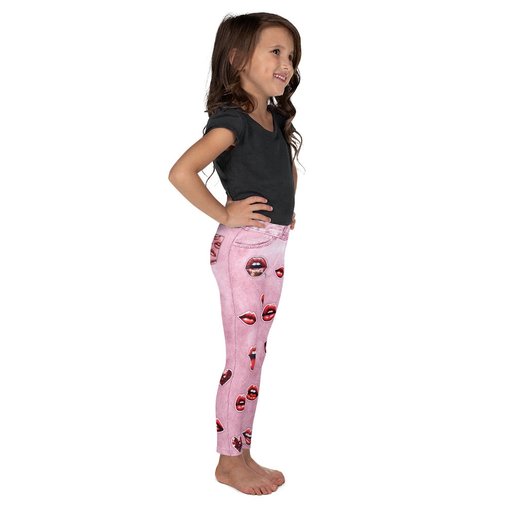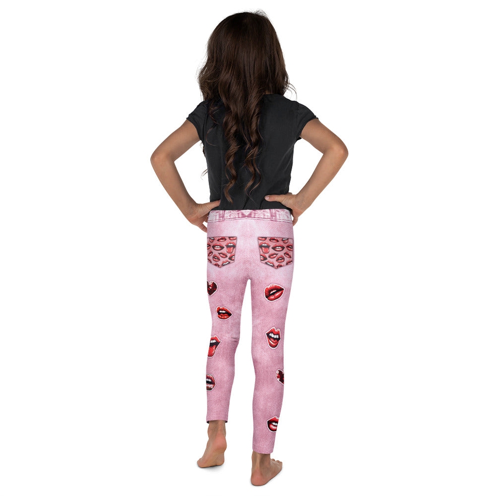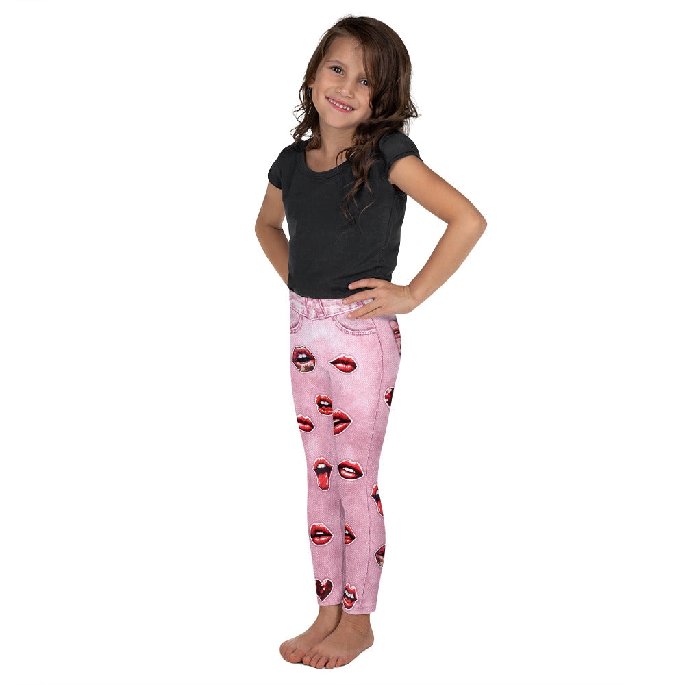 Valentine Lips Denim Print Kids Compression Legging
