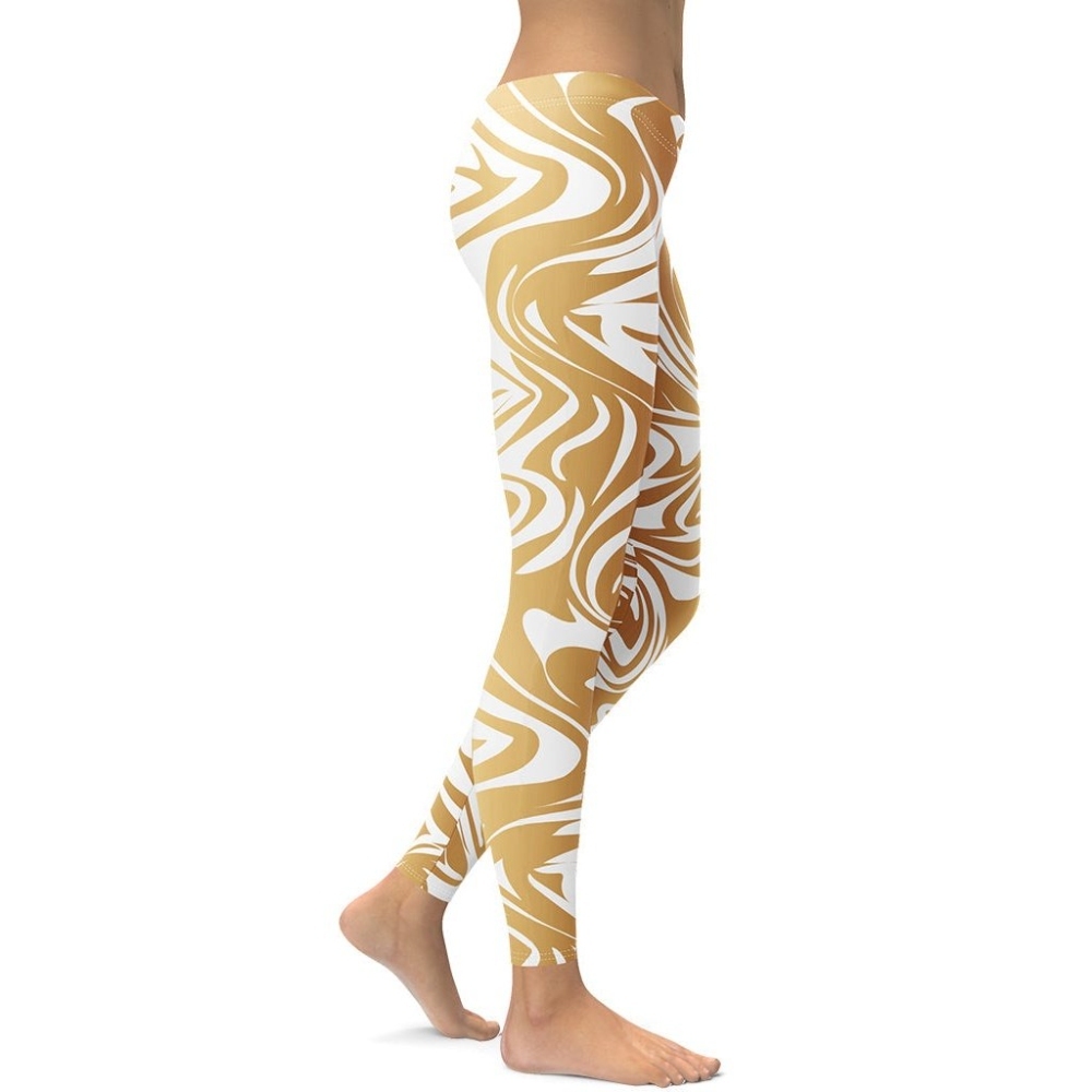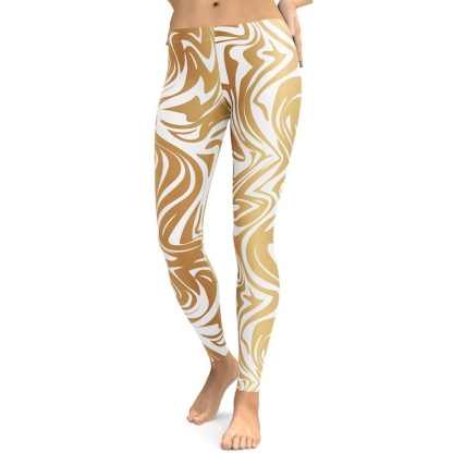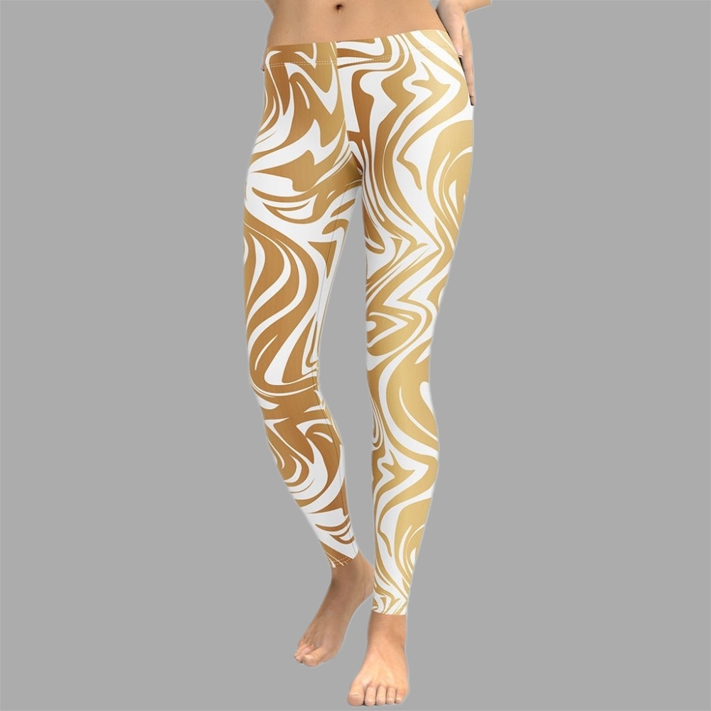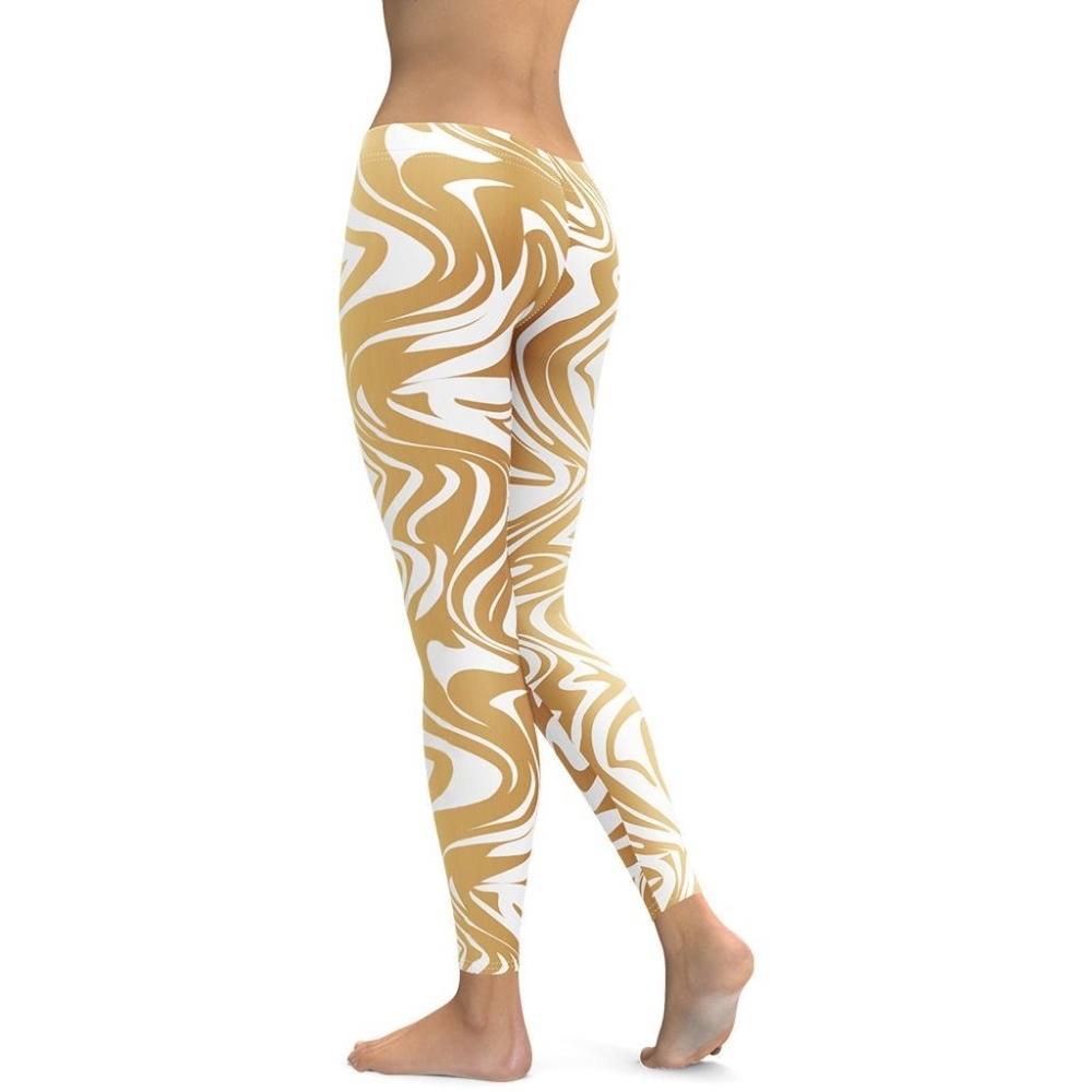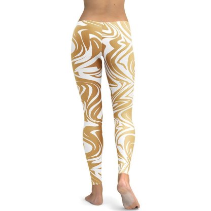 White And Gold Print lady Compression Legging