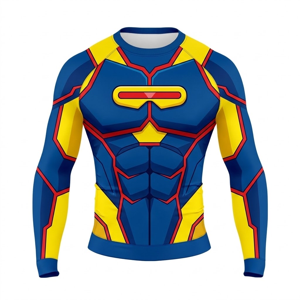 Superhero Cyclops Mutant Leader Blue Yellow Long Sleeve Compression Shirt