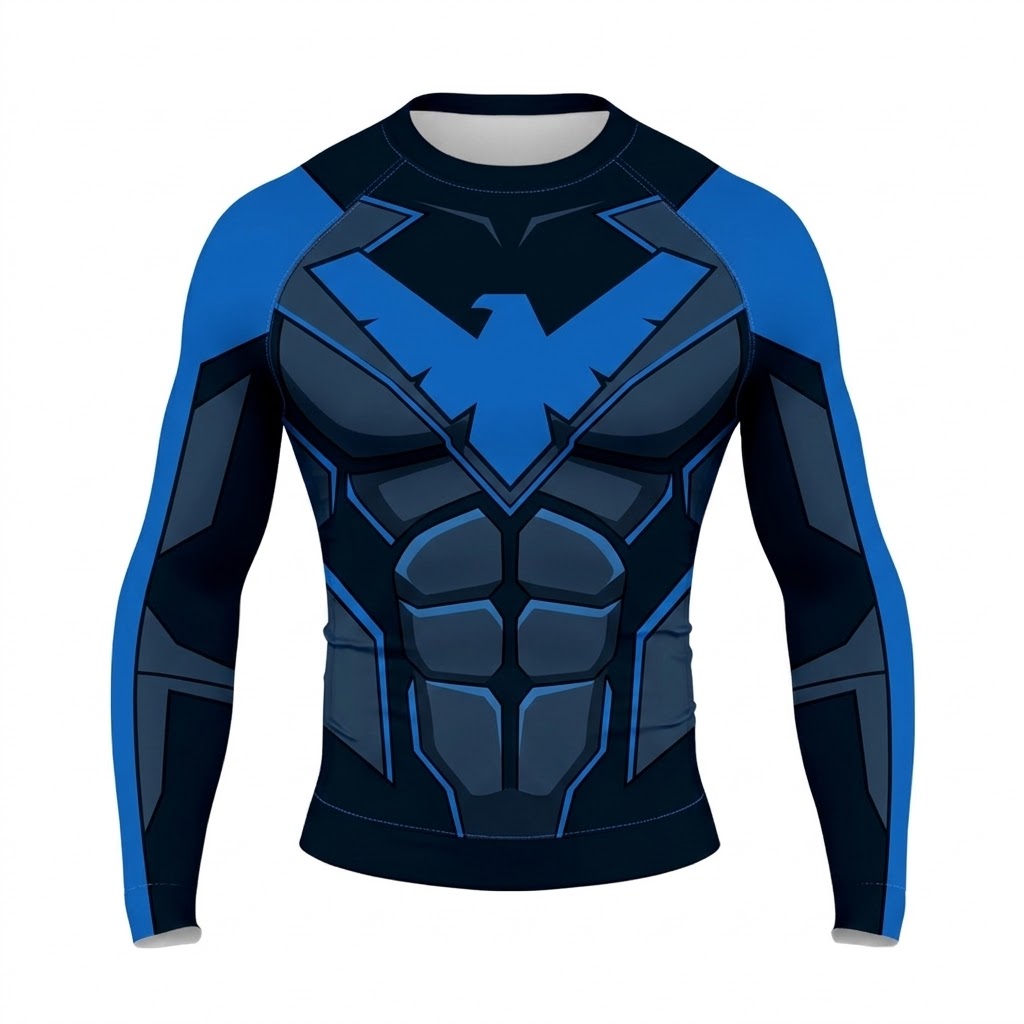 Superhero Nightwing Stealth Armor Dark Blue Black Long Sleeve Compression Shirt