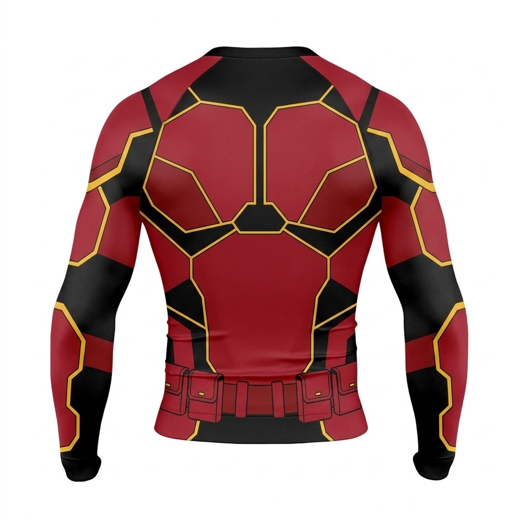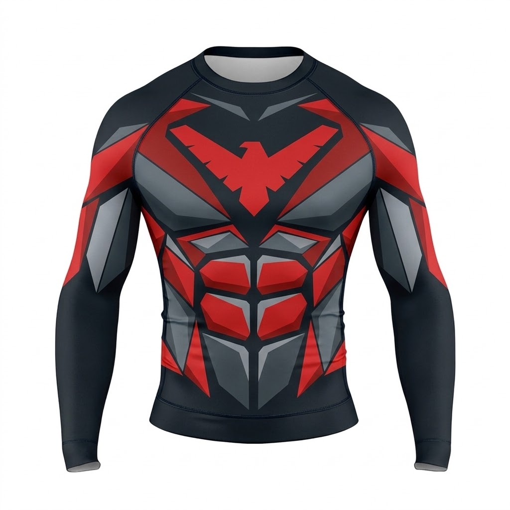 Superhero Nightwing Tactical Combat Red Black Long Sleeve Compression Shirt
