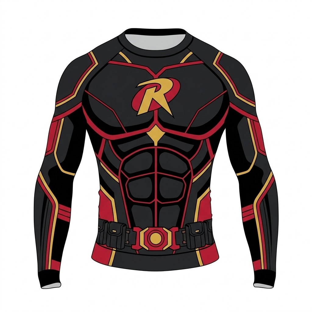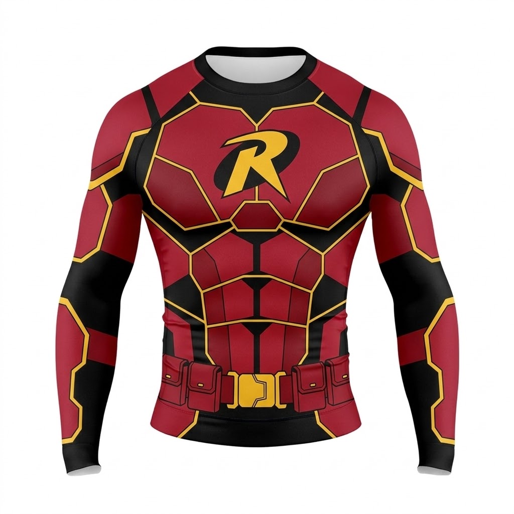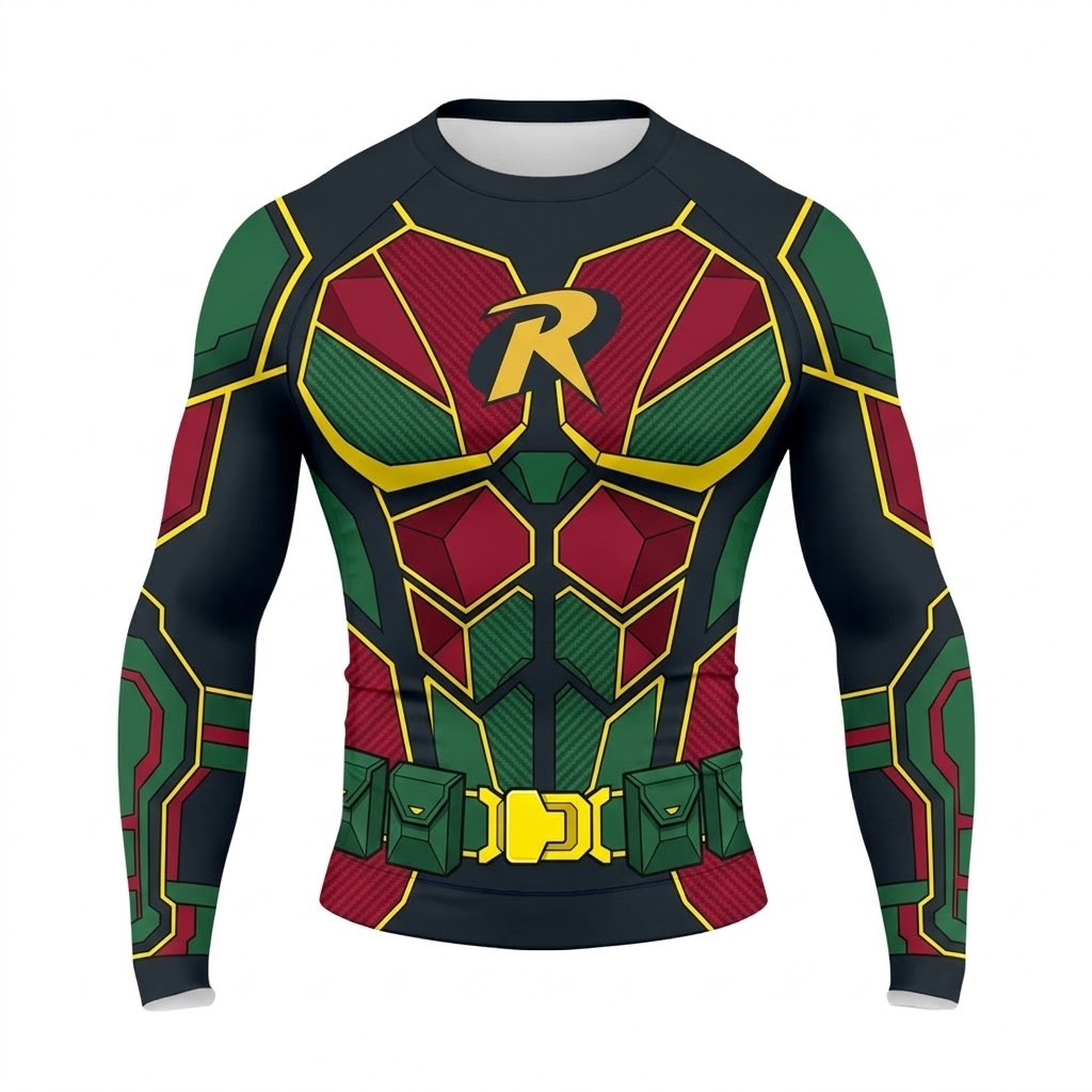 Superhero Robin Boy Wonder Green Red Long Sleeve Compression Shirt