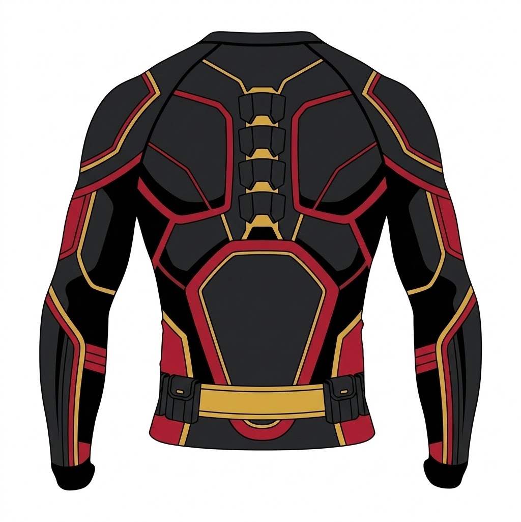 Superhero Black Widow Stealth Armor Black and Red Long Sleeve Compression Shirt