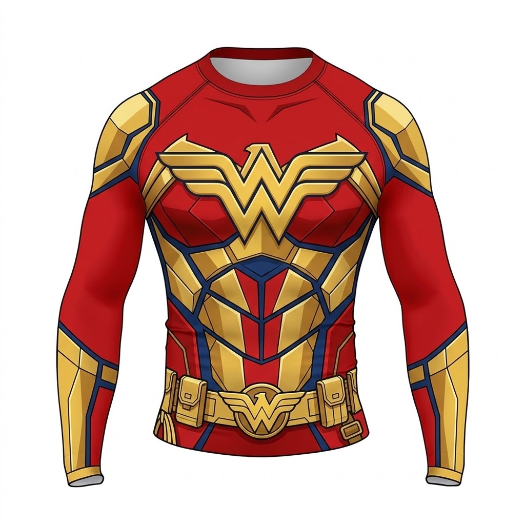 Superhero Wonder Woman Amazonian Warrior Red Gold Long Sleeve Compression Shirt