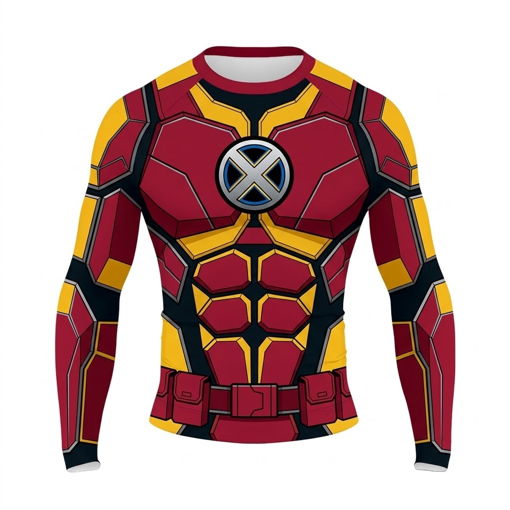 Superhero X-Men Crimson Strike Red Gold Long Sleeve Compression Shirt