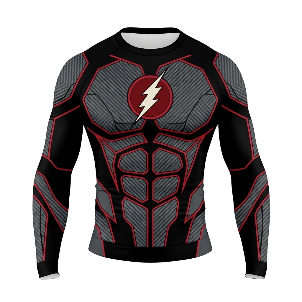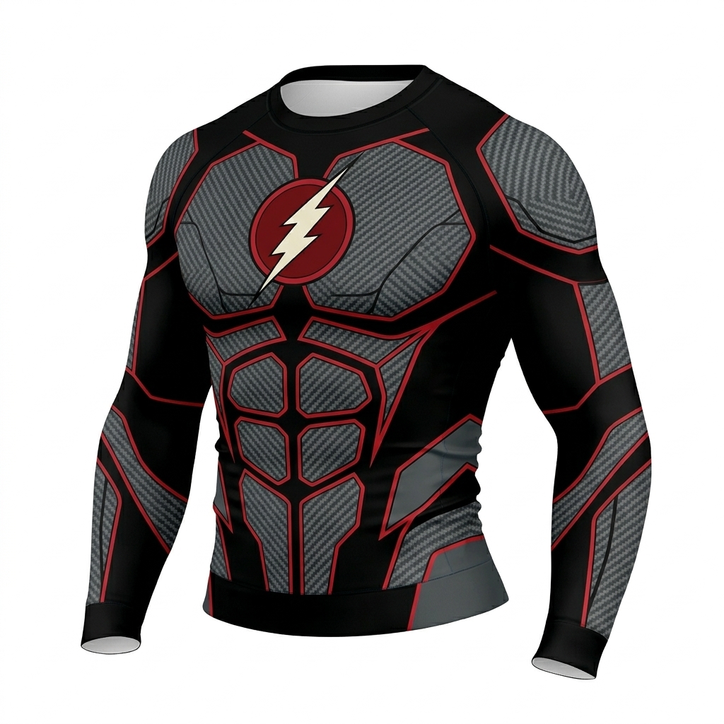Flash Barry Allen Superhero Dark Flash Sinister Spark Black Red Long Sleeve Compression Shirt