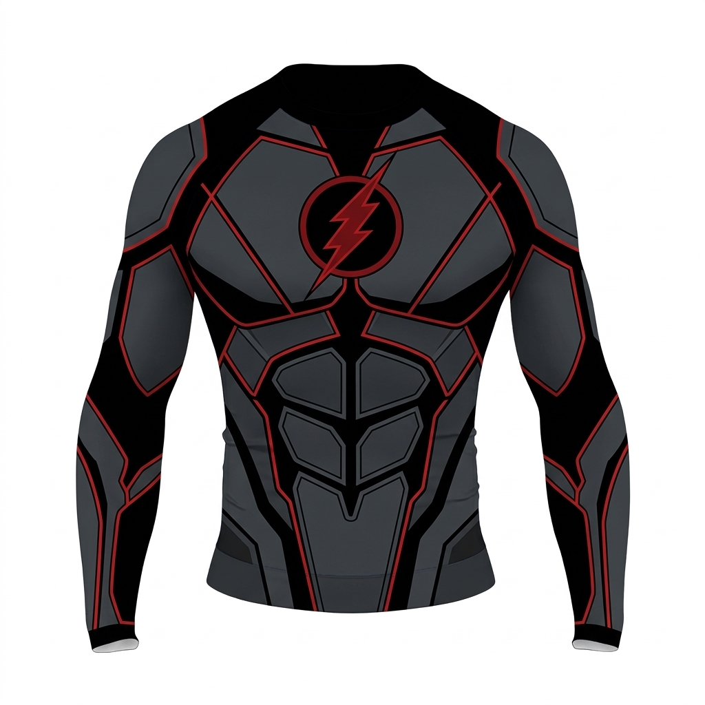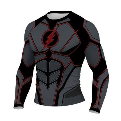 Flash Barry Allen Superhero Future Speed Armored Angles Black Red Grey Long Sleeve Compression Shirt