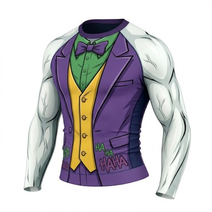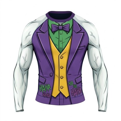 Jack Napier Joker Villain Mad Clown Asymmetrical Cuts White Green Long Sleeve Compression Shirt