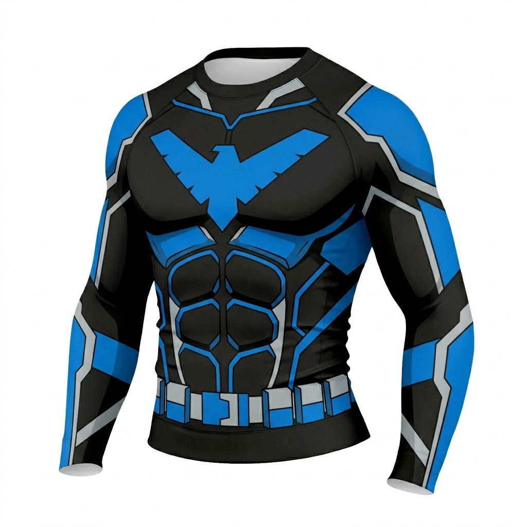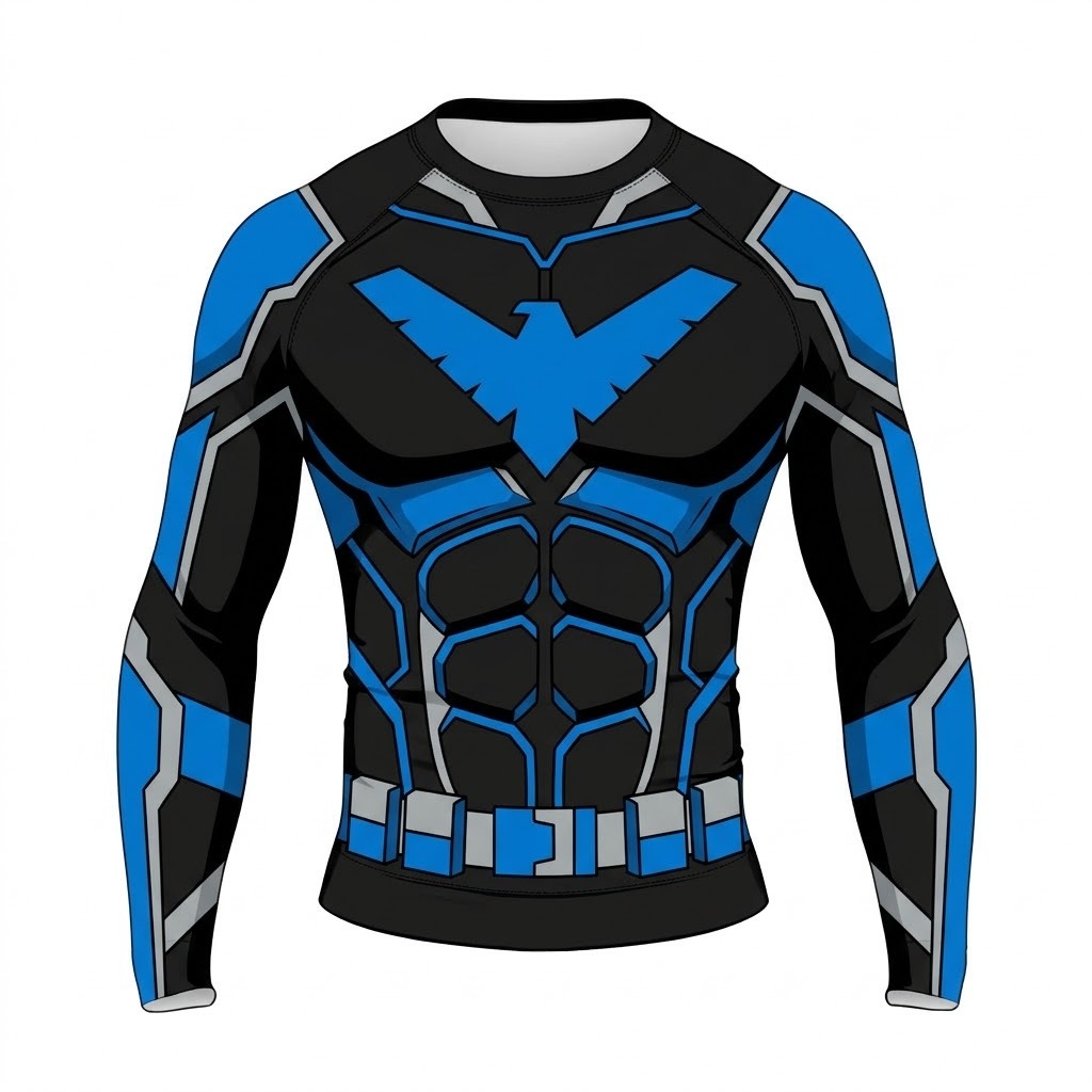 Nightwing Dick Grayson Superhero Bludhaven Protector Athletic Sweeps Onyx Blue Long Sleeve Compression Shirt