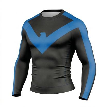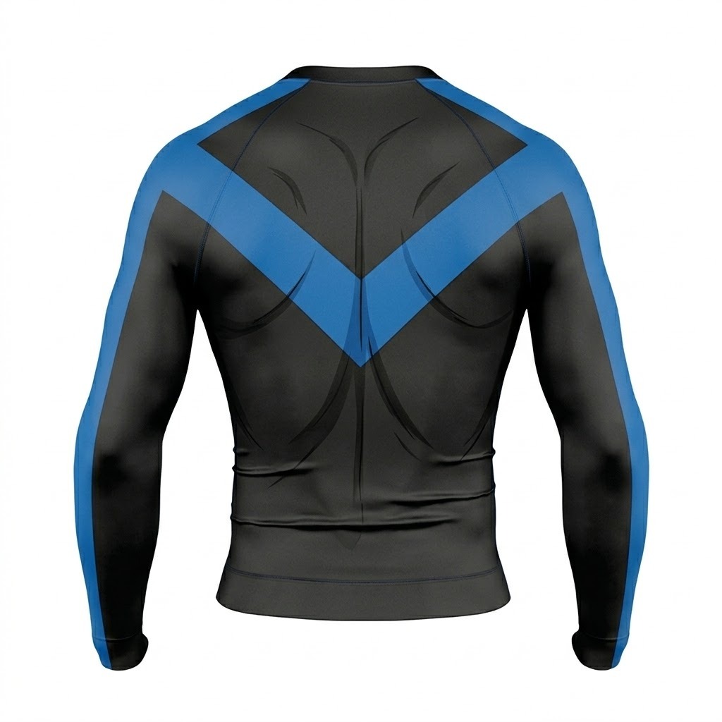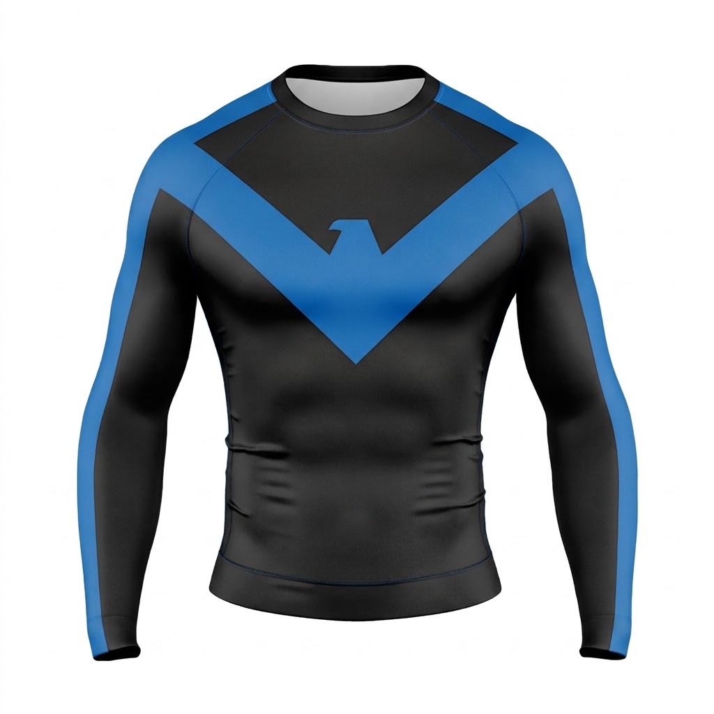 Nightwing Dick Grayson Superhero Flying Grayson Fluid Dynamics Jet Black Blue Long Sleeve Compression Shirt