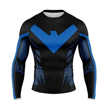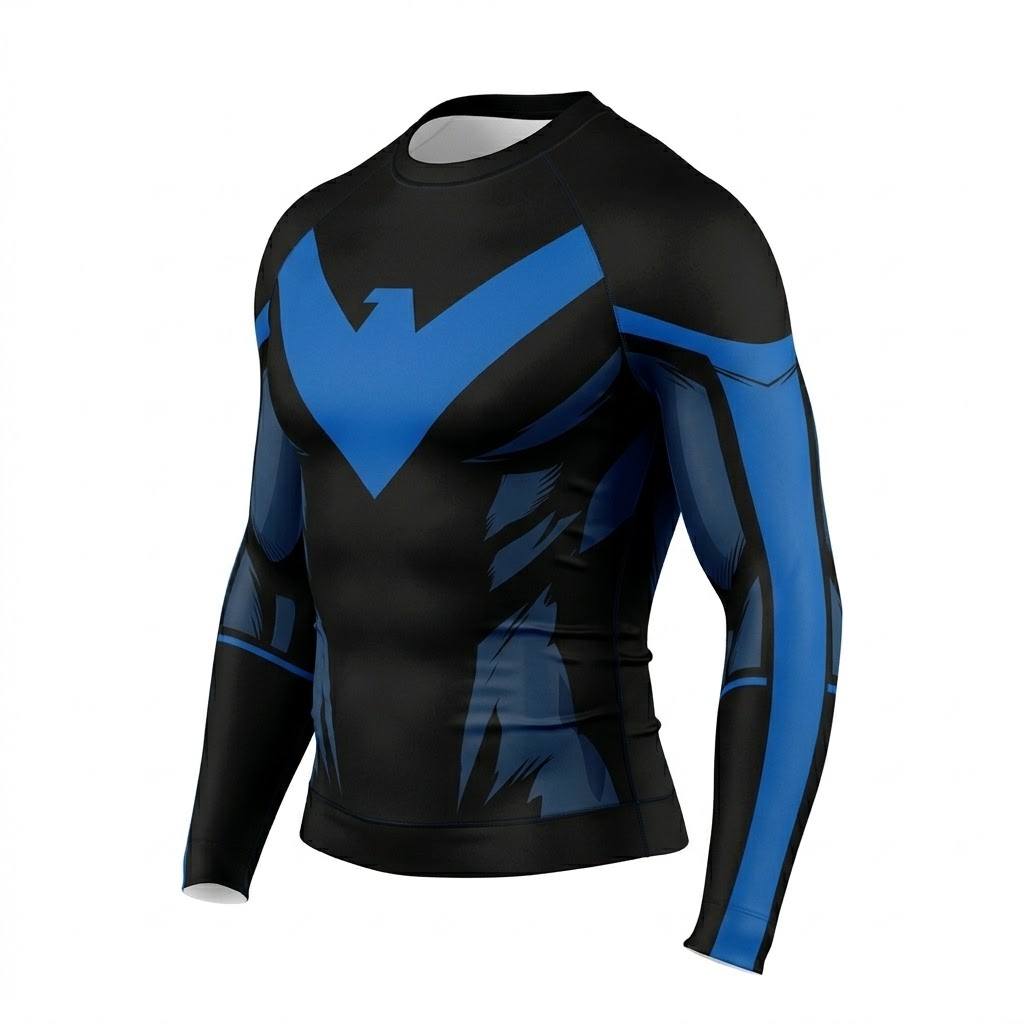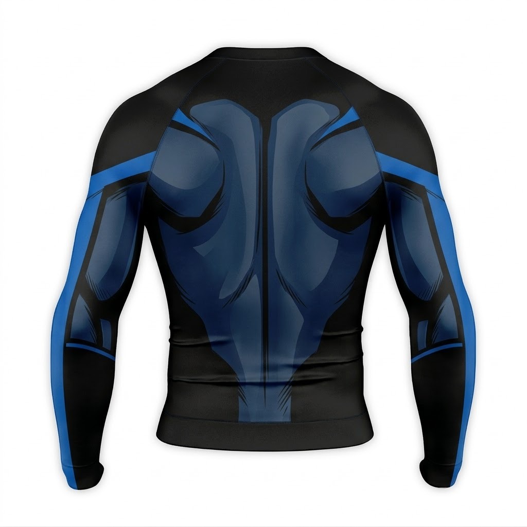 Nightwing Dick Grayson Superhero Night Patrol Streamlined Seams Obsidian Blue Long Sleeve Compression Shirt
