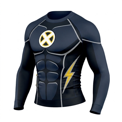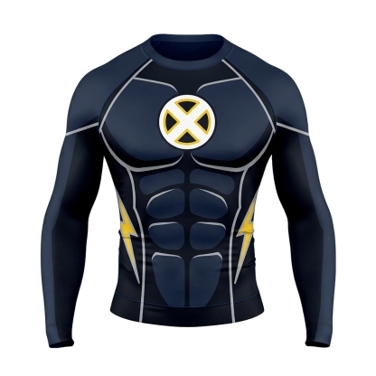 Ororo Munroe X Men Storm Superhero Tempest Front Sleek Contours Navy Black Long Sleeve Compression Shirt