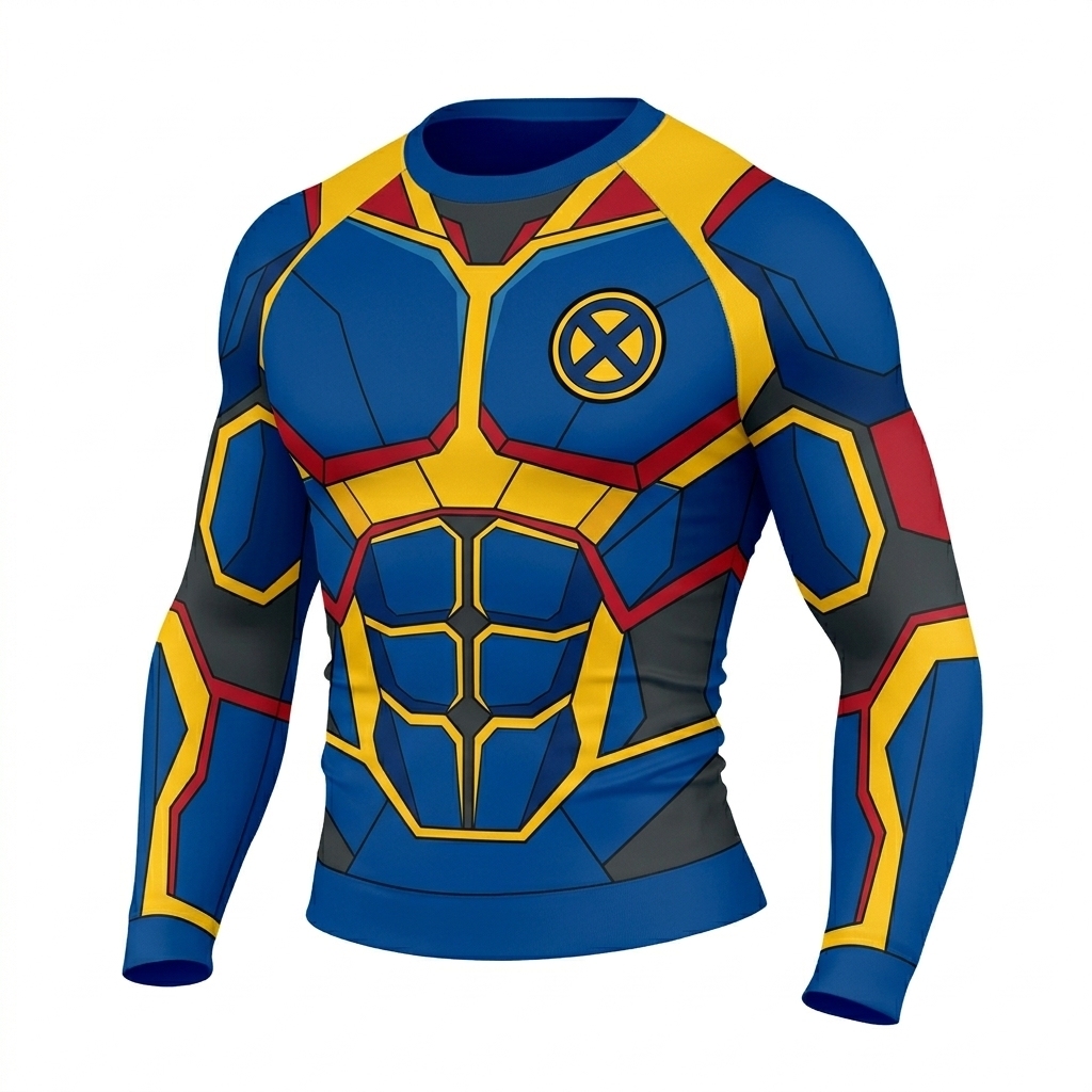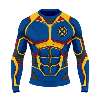 Scott Summers Cyclops Superhero Visor Focus Structured Grids Blue Gold Long Sleeve Compression Shirt