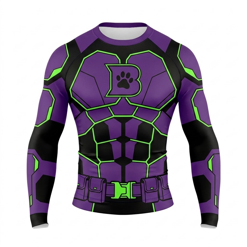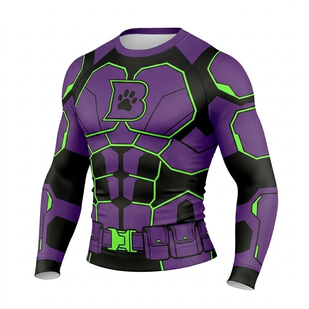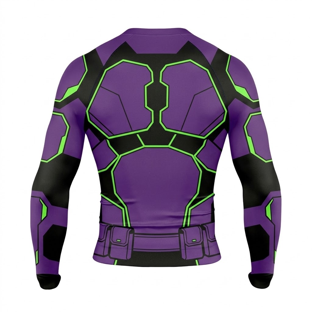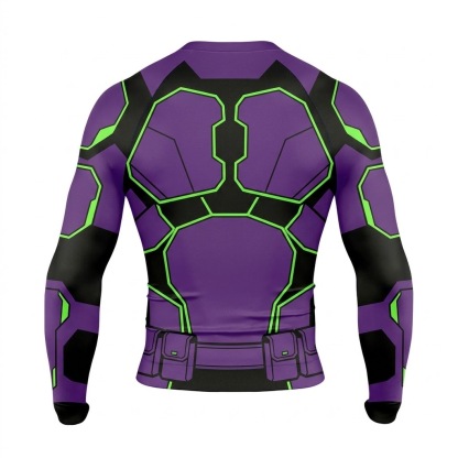 Superhero Beast Boy Tech Style Purple and Green Long Sleeve Compression Shirt