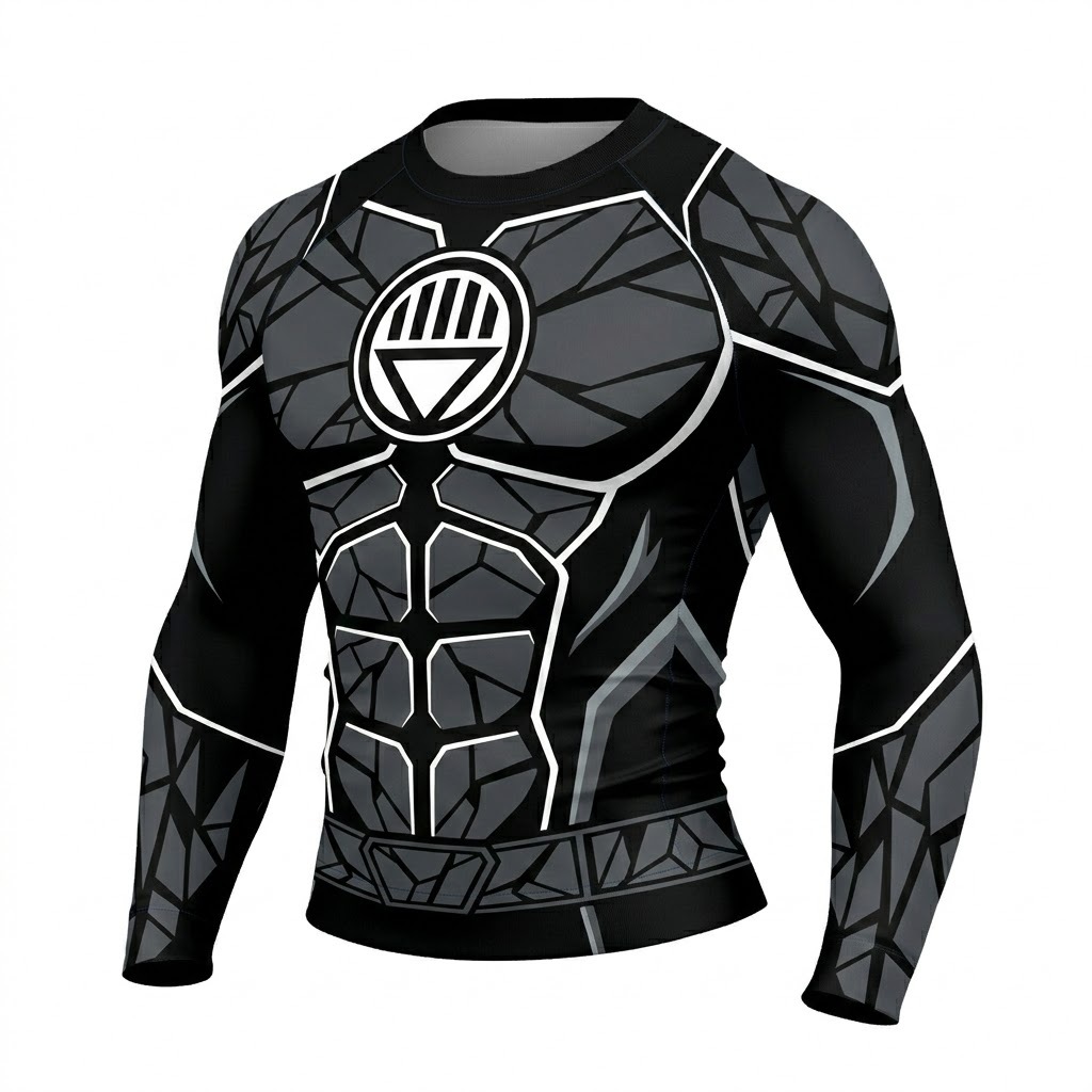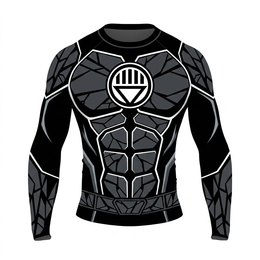 Superhero Black Lantern Circuit Tech Style Graphite Long Sleeve Compression Shirt