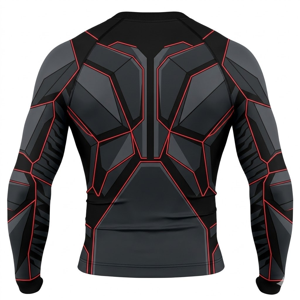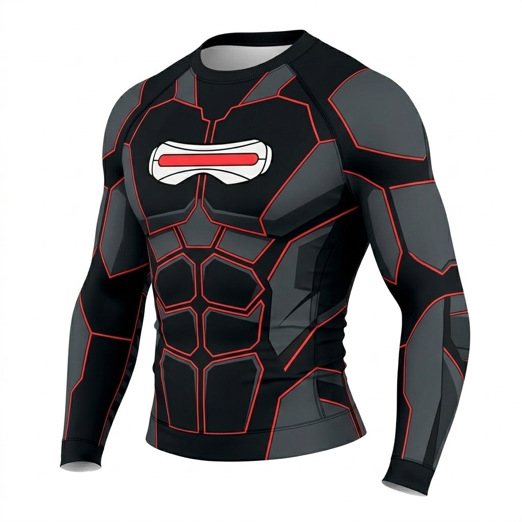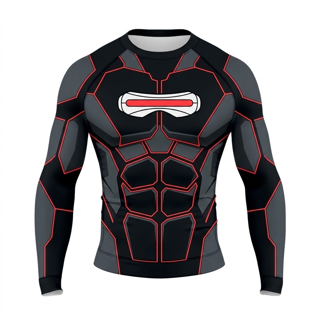 Superhero Cyclops Futuristic Tech Black Red Long Sleeve Compression Shirt