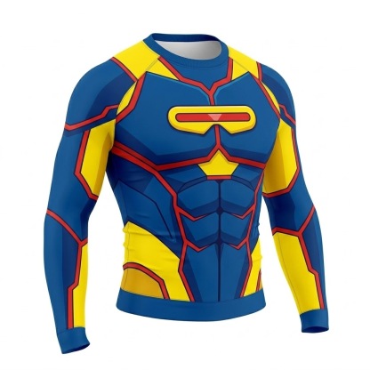 Superhero Cyclops Mutant Leader Blue Yellow Long Sleeve Compression Shirt