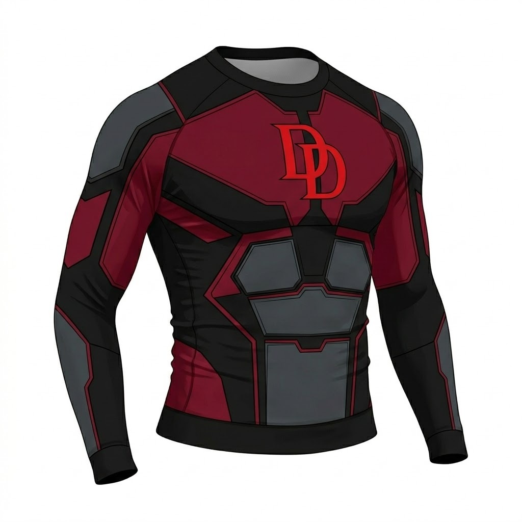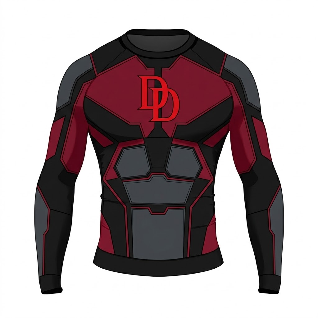 Superhero Daredevil Tactical Weave Crimson Shadow Long Sleeve Compression Shirt
