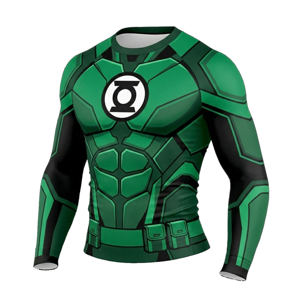 Superhero Green Lantern Exoskeletal Green Long Sleeve Compression Shirt