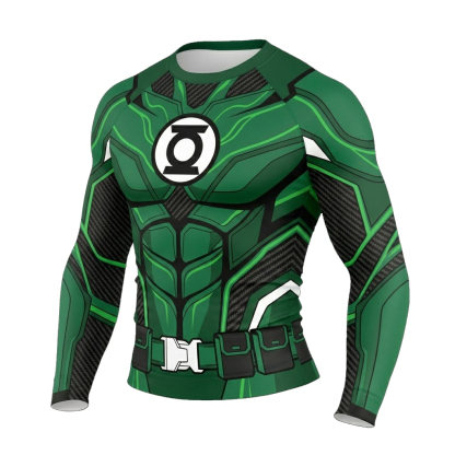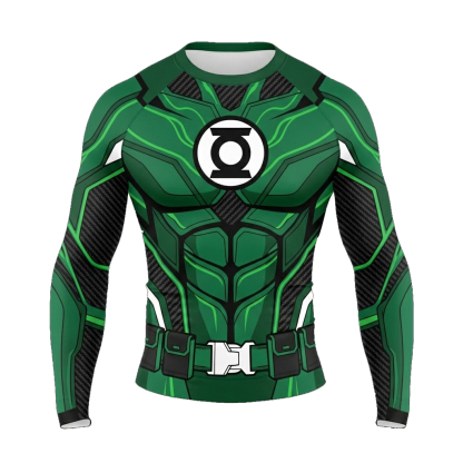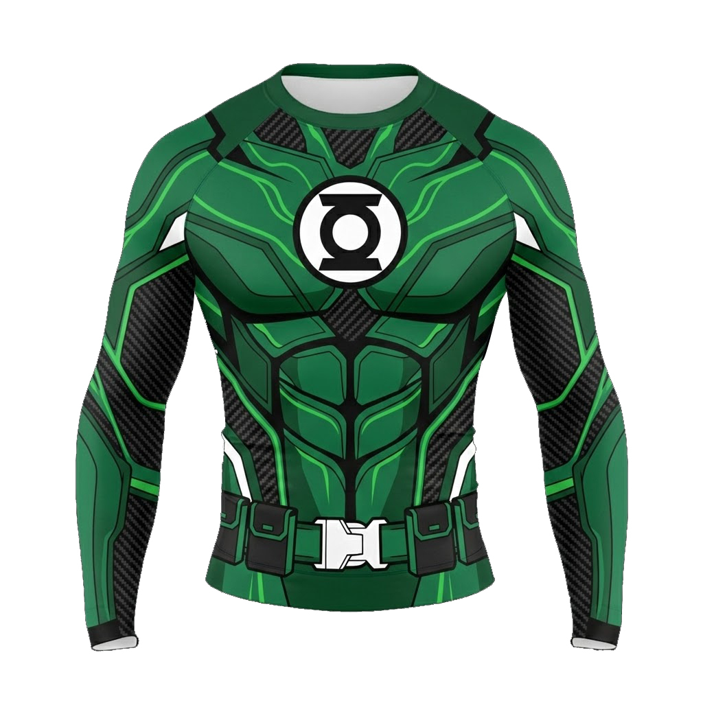 Superhero Green Lantern Galactic Warrior Emerald Green Long Sleeve Compression Shirt
