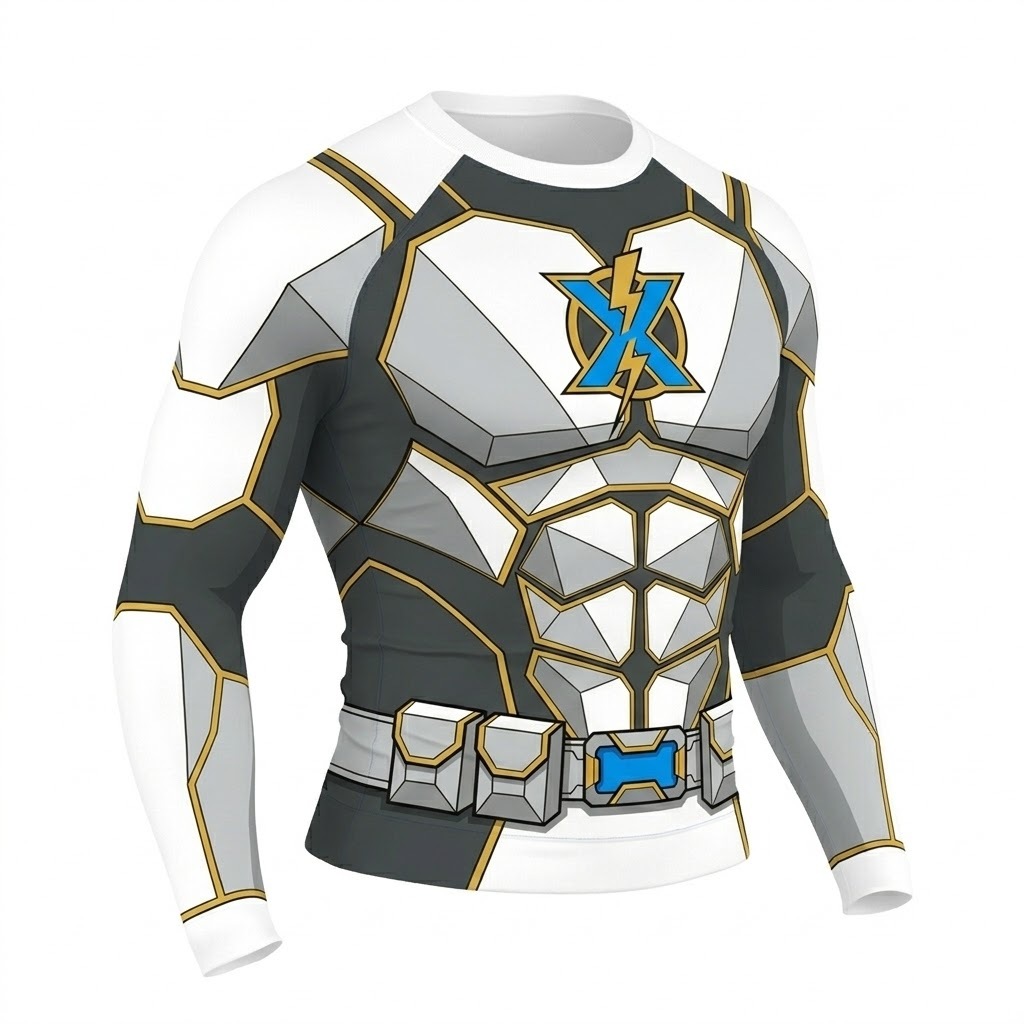 Superhero Moon Knight Lunar Avatar White Silver Long Sleeve Compression Shirt