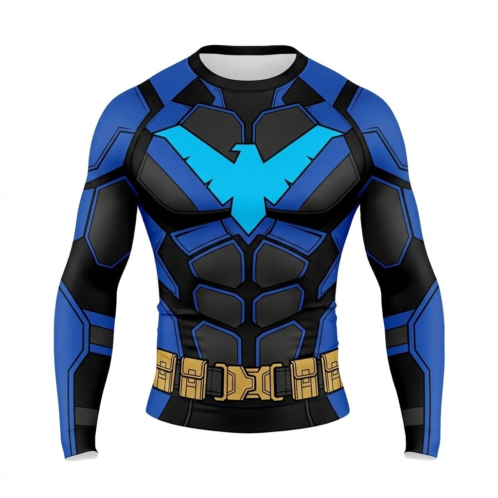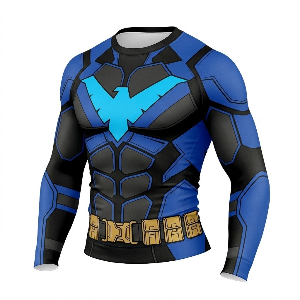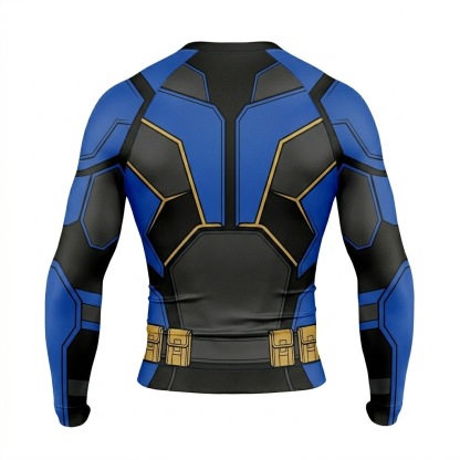 Superhero Nightwing Athletic Armor Comic Style Black Blue Long Sleeve Compression Shirt