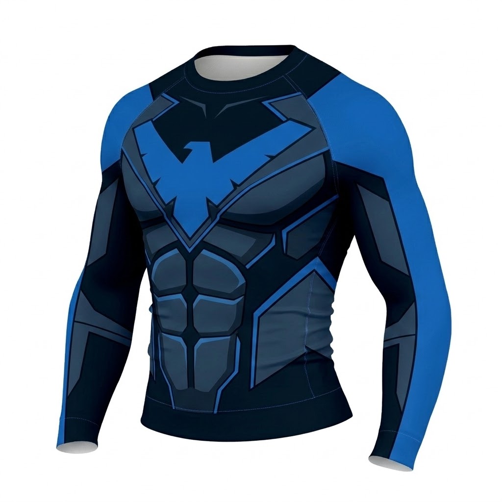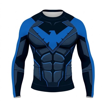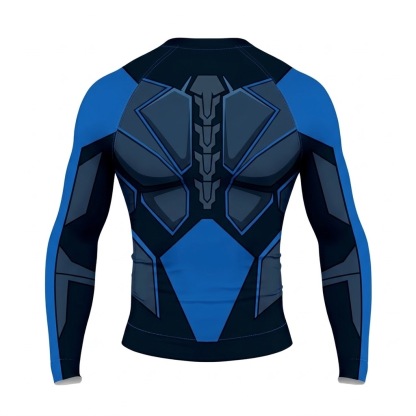 Superhero Nightwing Classic Athletic Blue Black Long Sleeve Compression Shirt