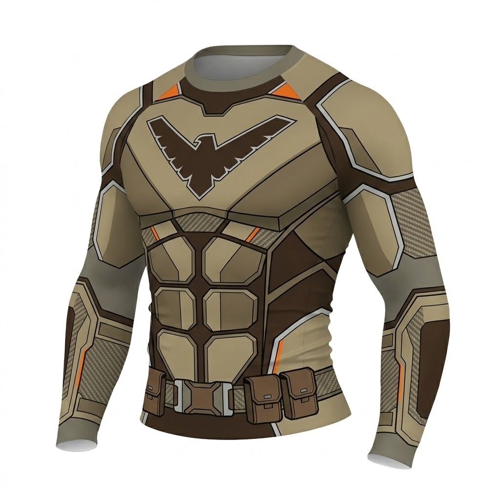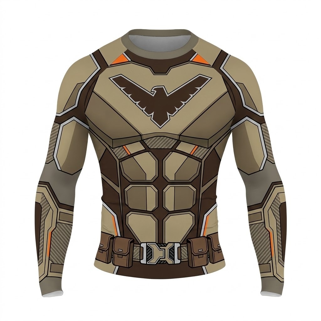 Superhero Nightwing Classic Combat Brown Tan Long Sleeve Compression Shirt
