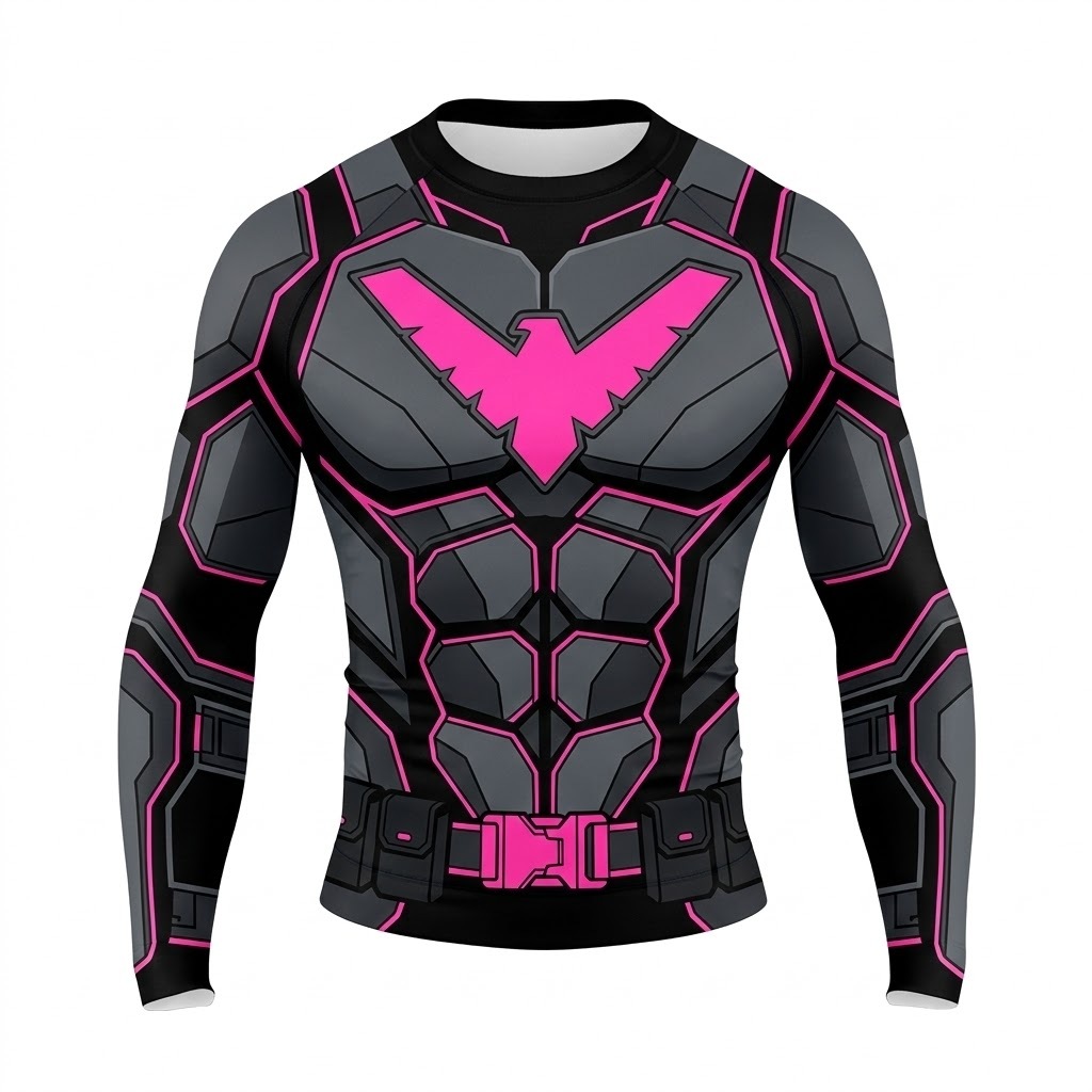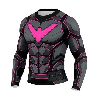 Superhero Nightwing Cyberpunk Style Purple Green Long Sleeve Compression Shirt