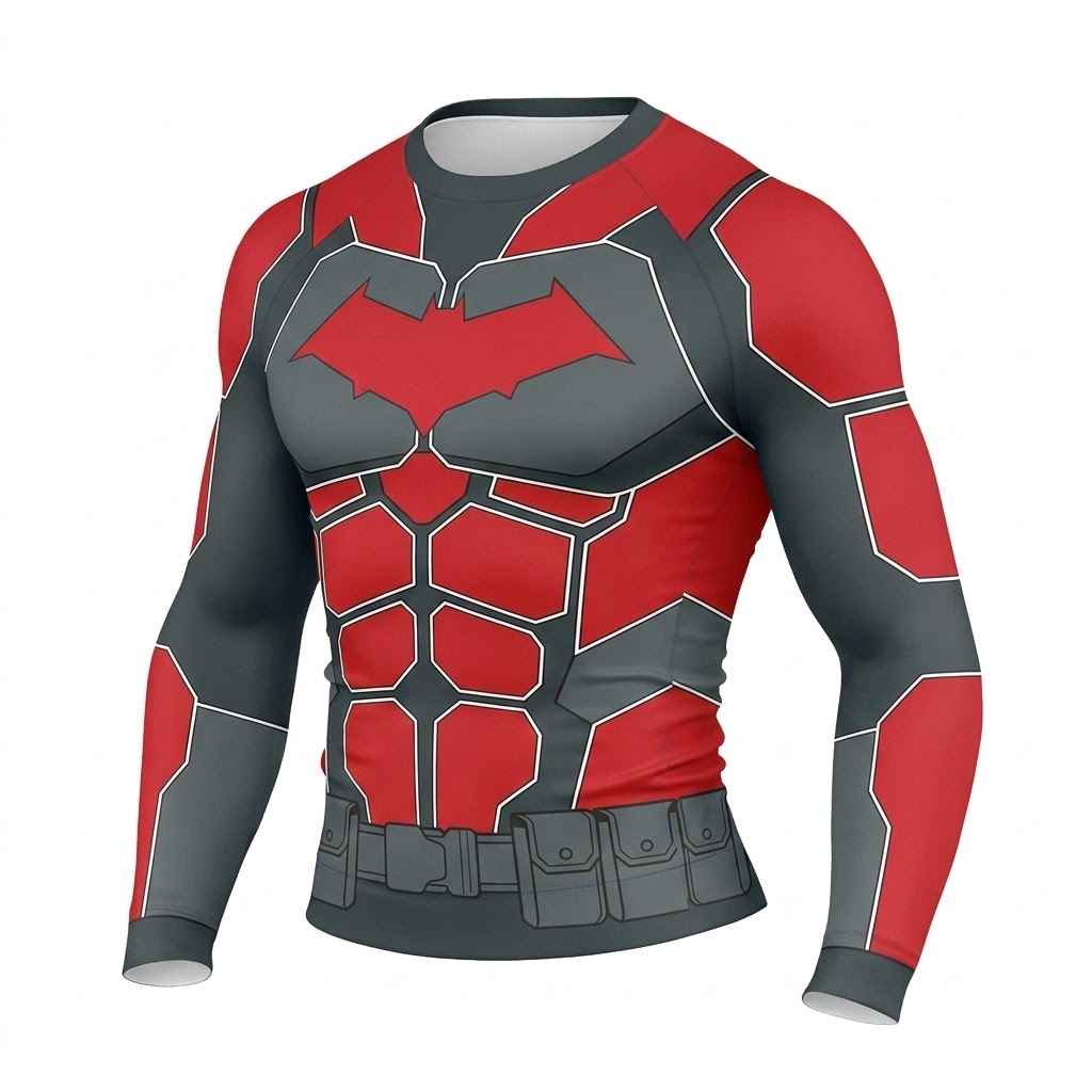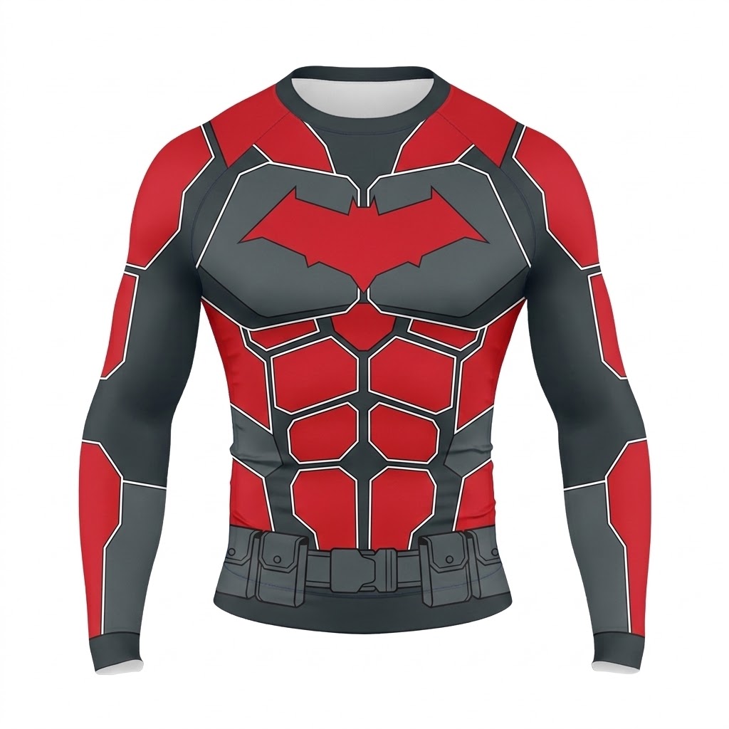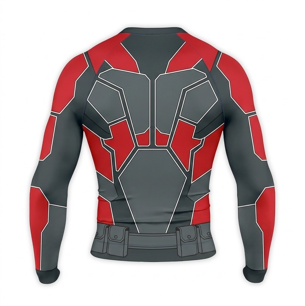 Superhero Red Hood Tech Style Red Black Long Sleeve Compression Shirt