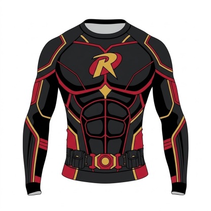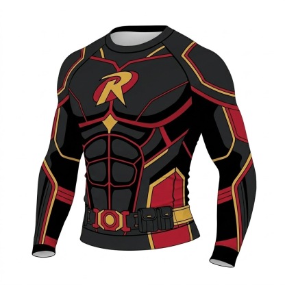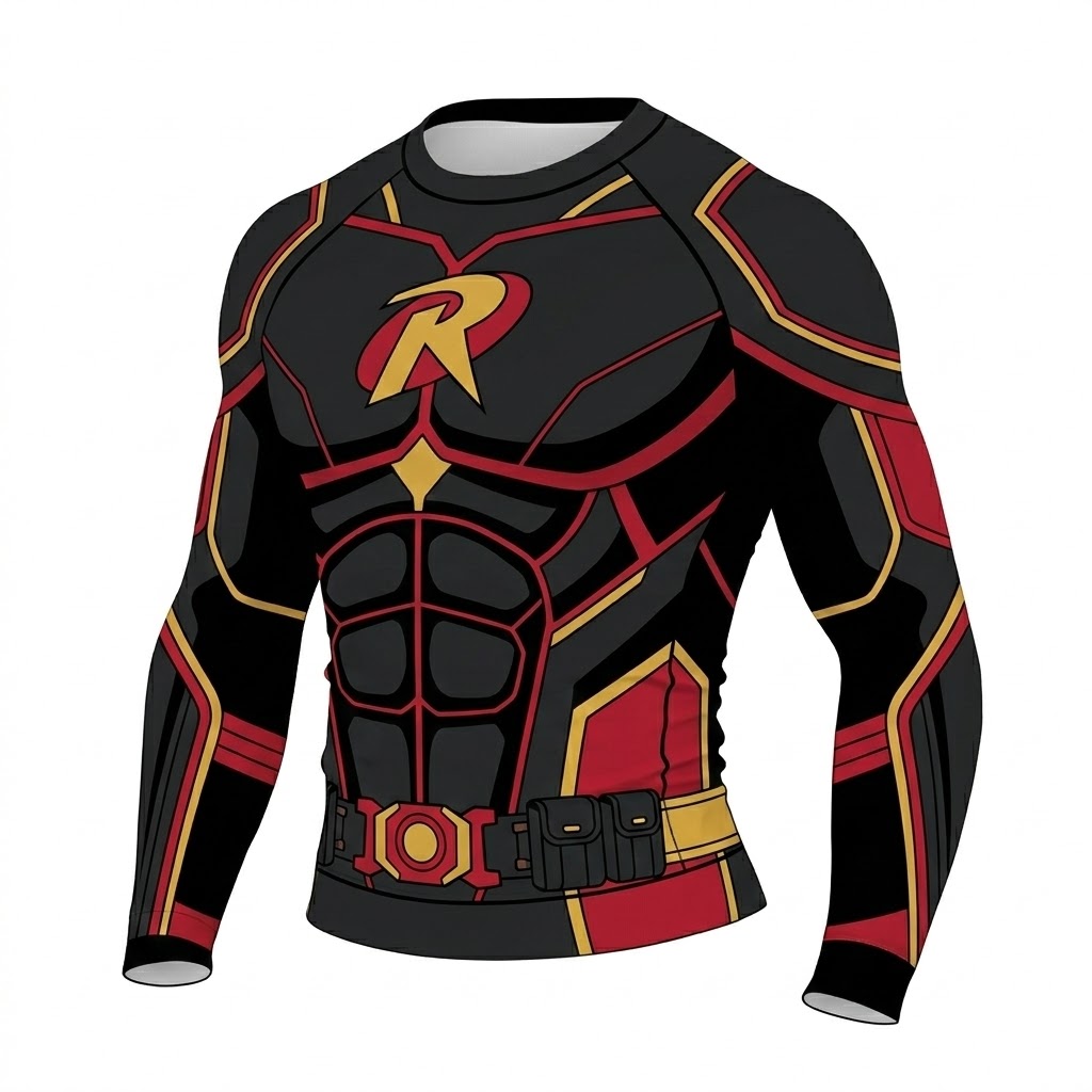 Superhero Robin Assassin Heir Black Red Long Sleeve Compression Shirt