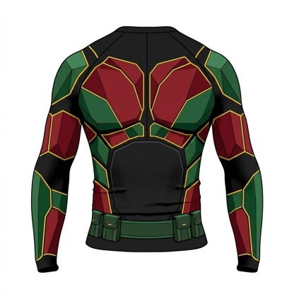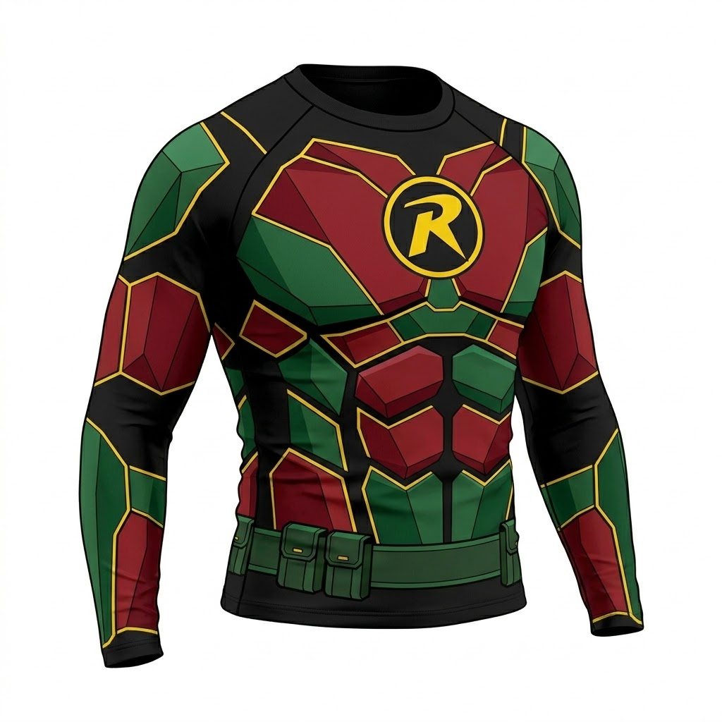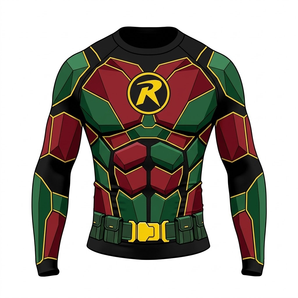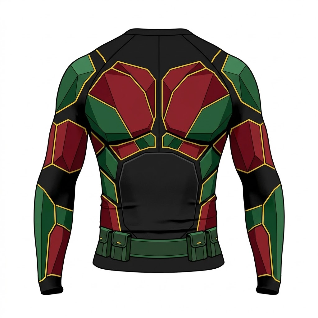Superhero Robin Classic Combat Red Green Yellow Long Sleeve Compression Shirt