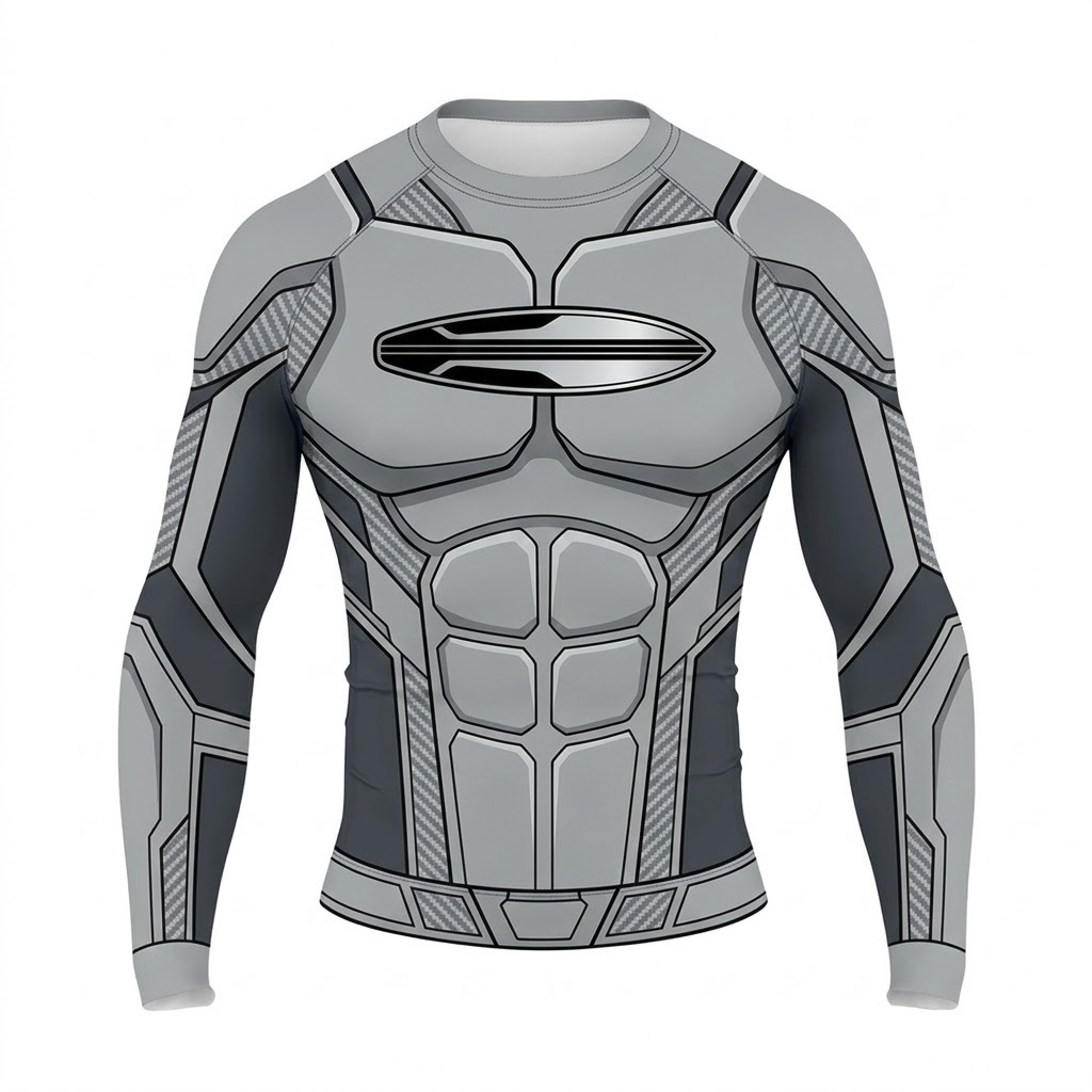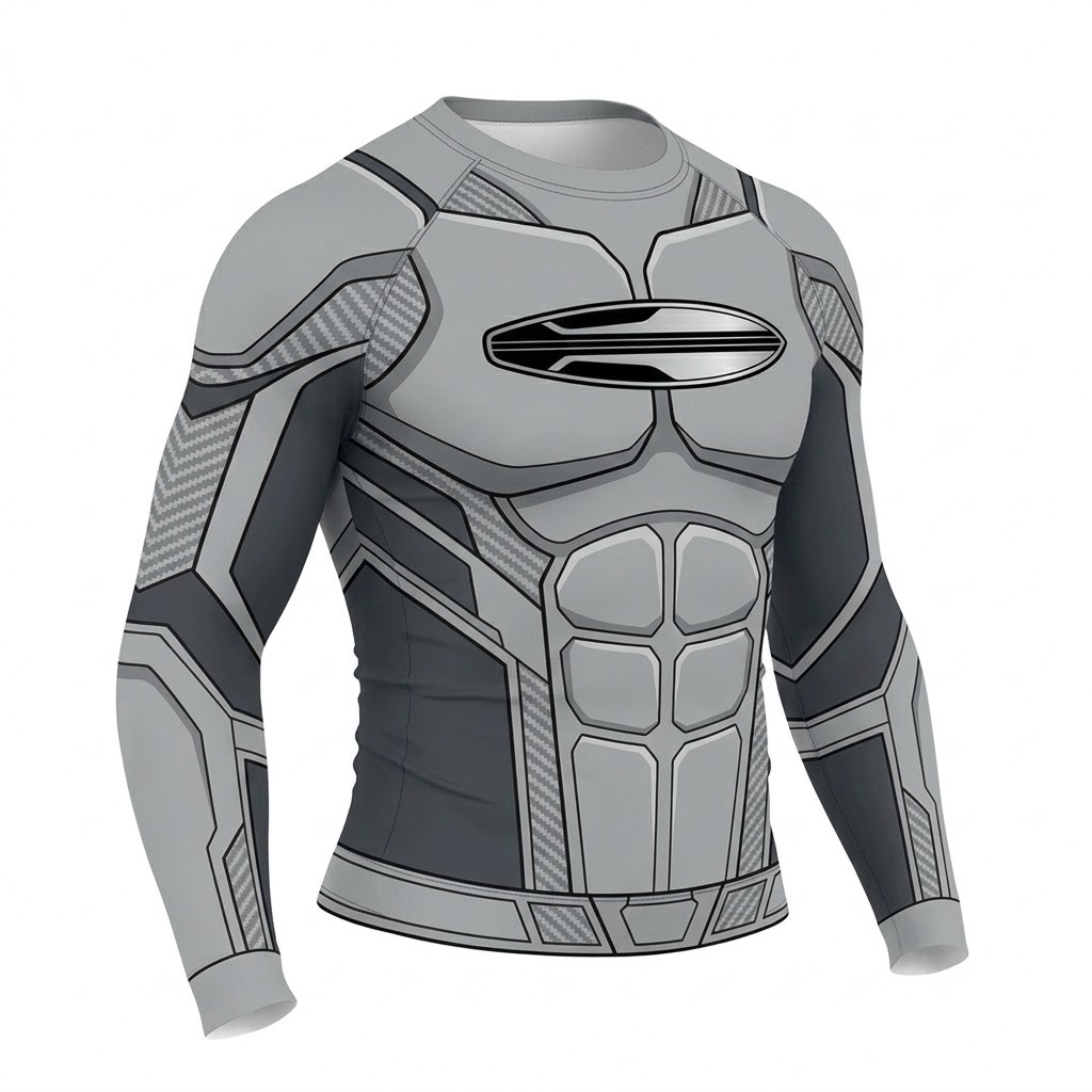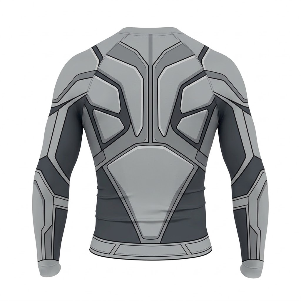Superhero Silver Surfer Armor Style Silver Grey Long Sleeve Compression Shirt