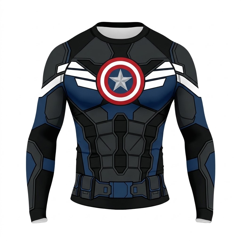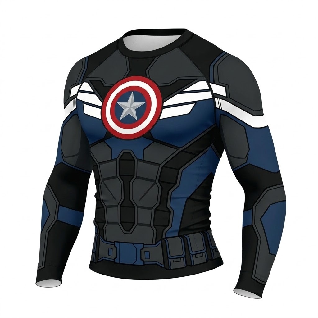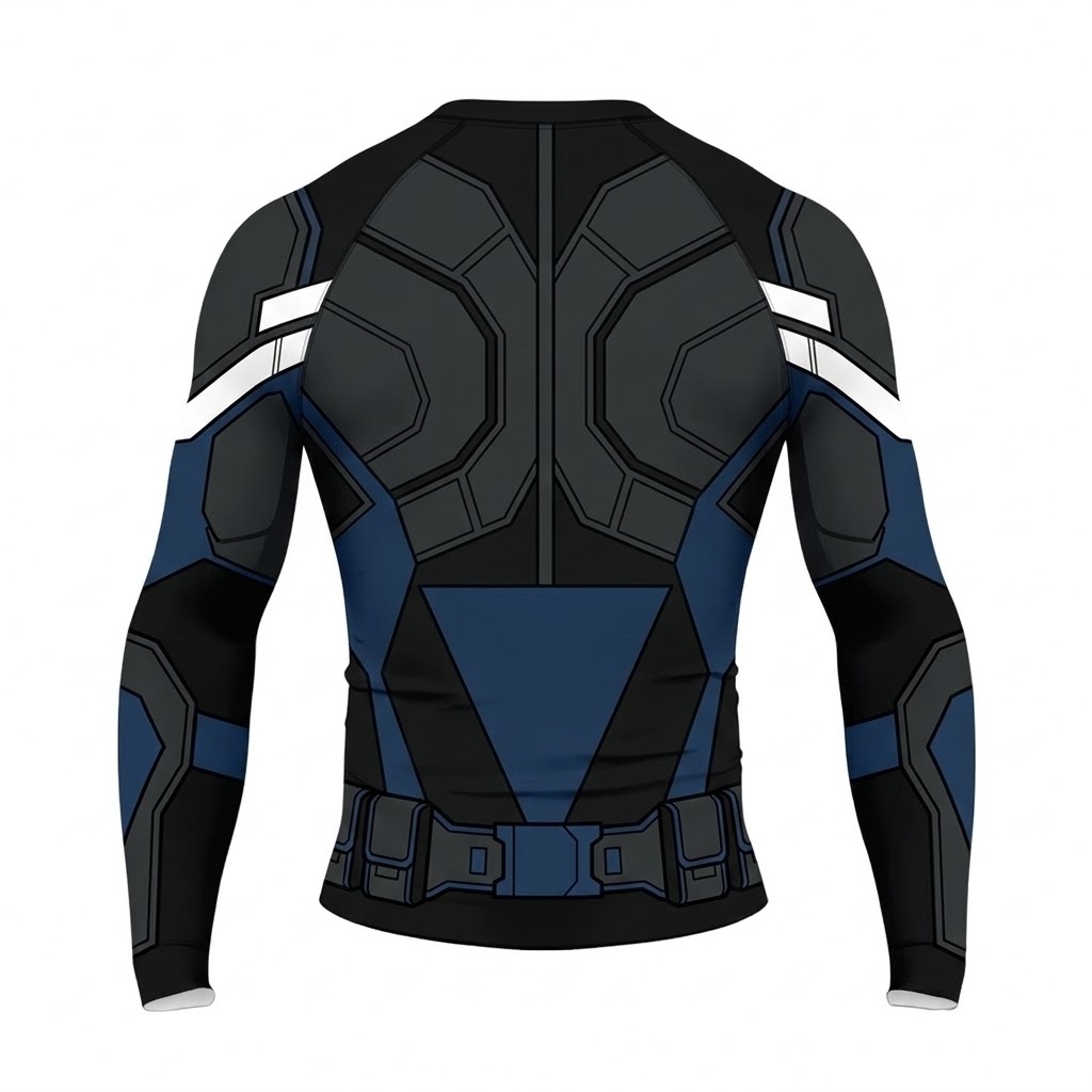 Superhero US Agent Stealth Operative Black Grey Long Sleeve Compression Shirt