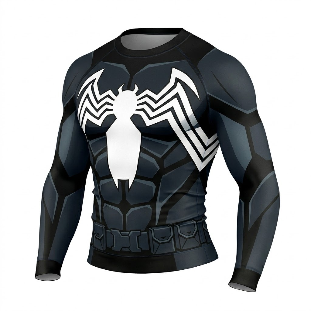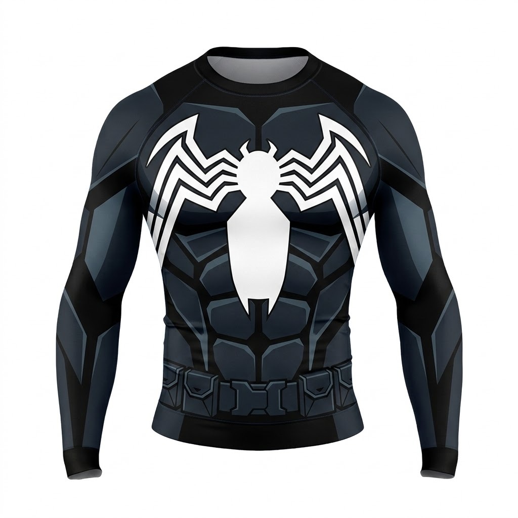 Superhero Venom Heroic Armor Style Black Long Sleeve Compression Shirt