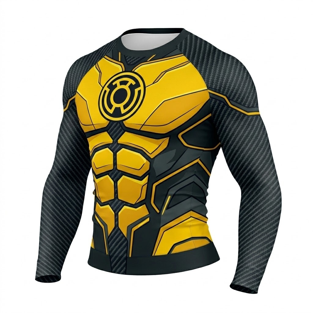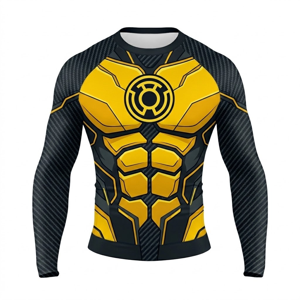 Superhero Yellow Lantern Visually Striking Yellow Long Sleeve Compression Shirt