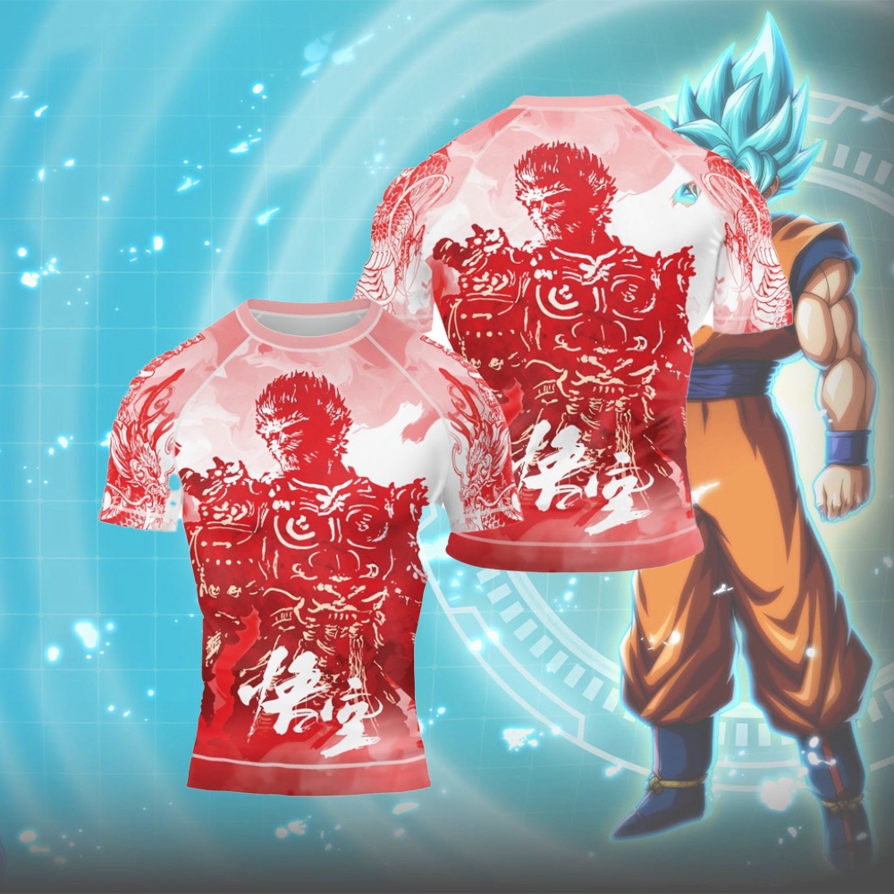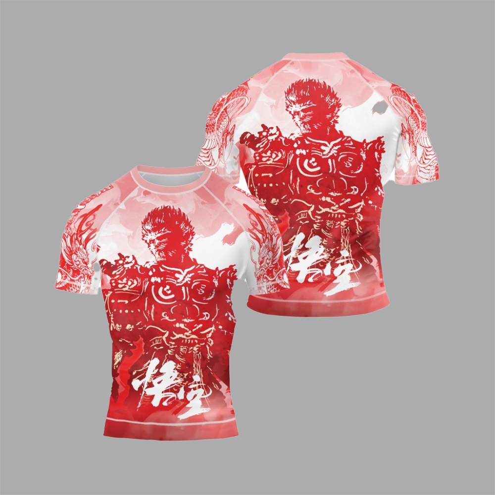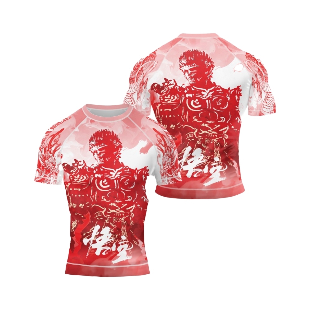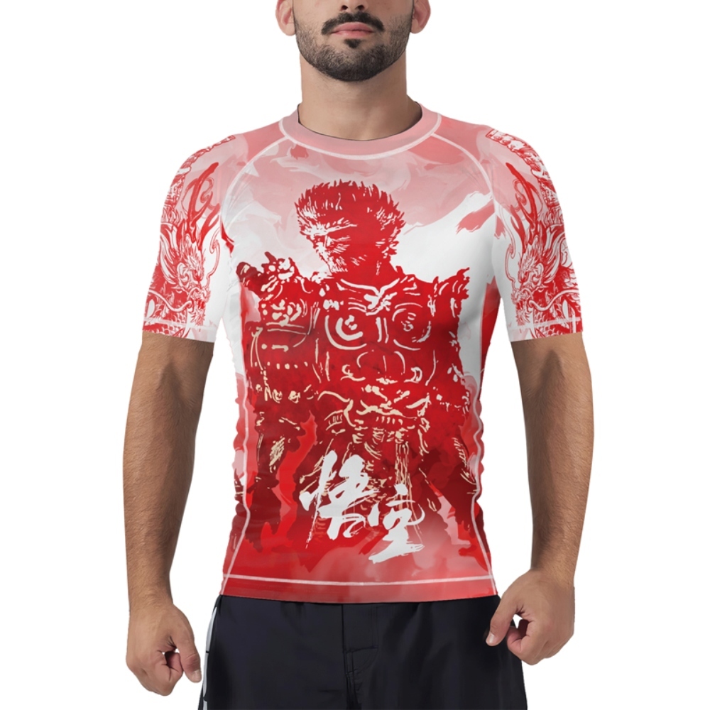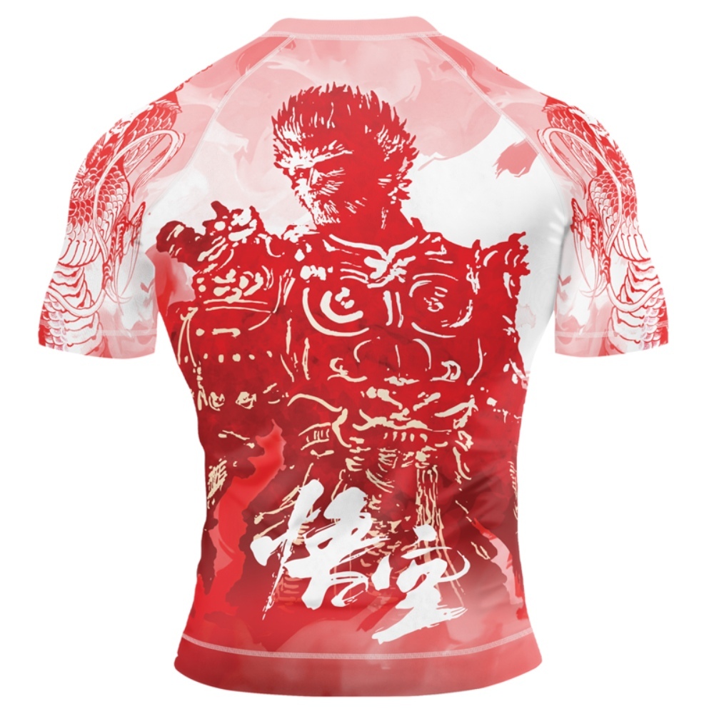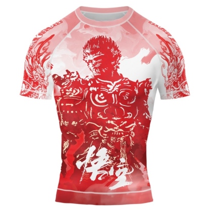 Red Dragon Monkey King Mens Short Sleeve Compression Shirt