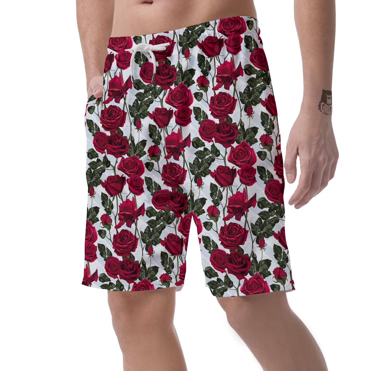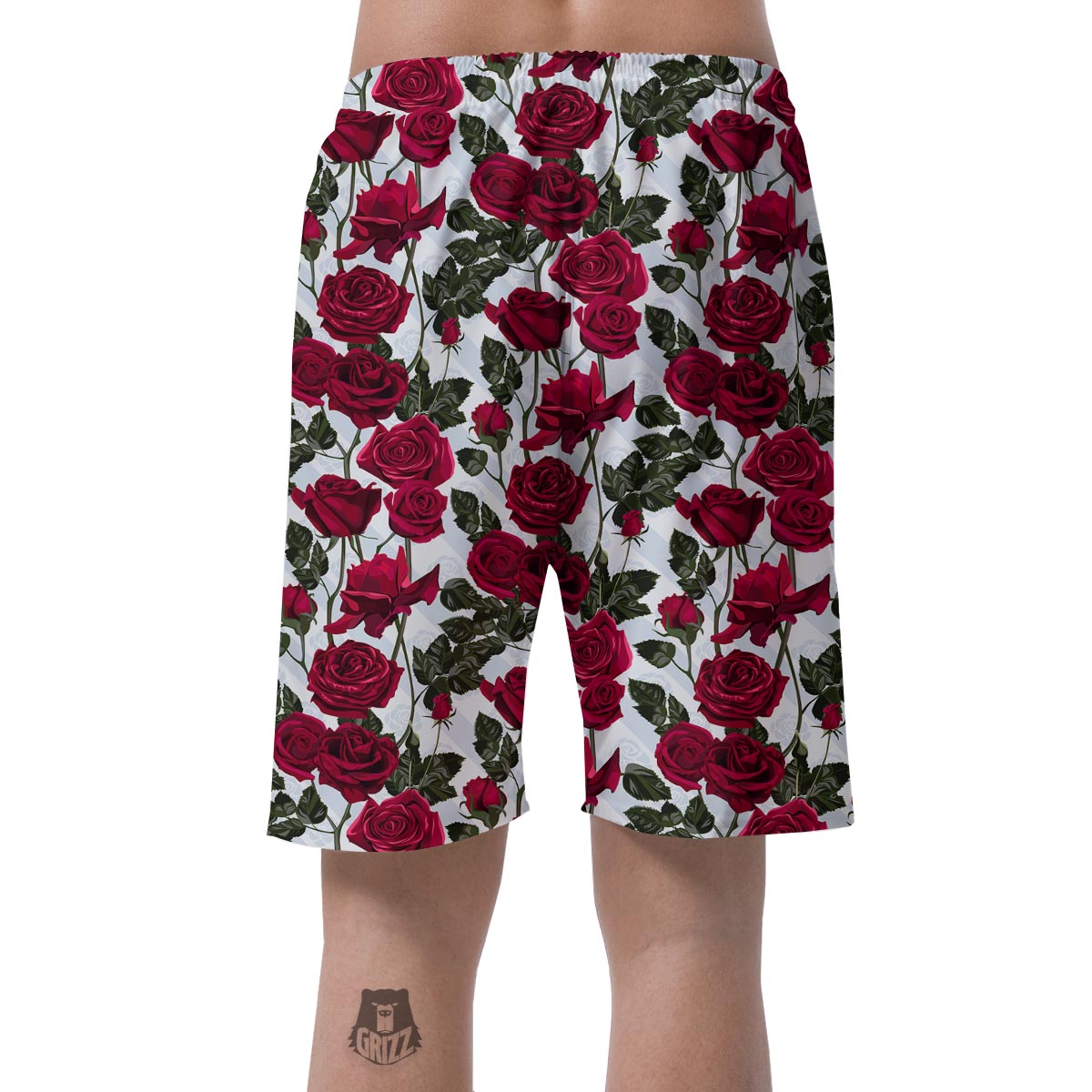 Red Rose Flower Print Mens Beach Short