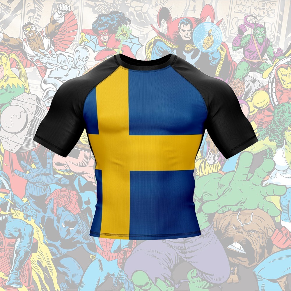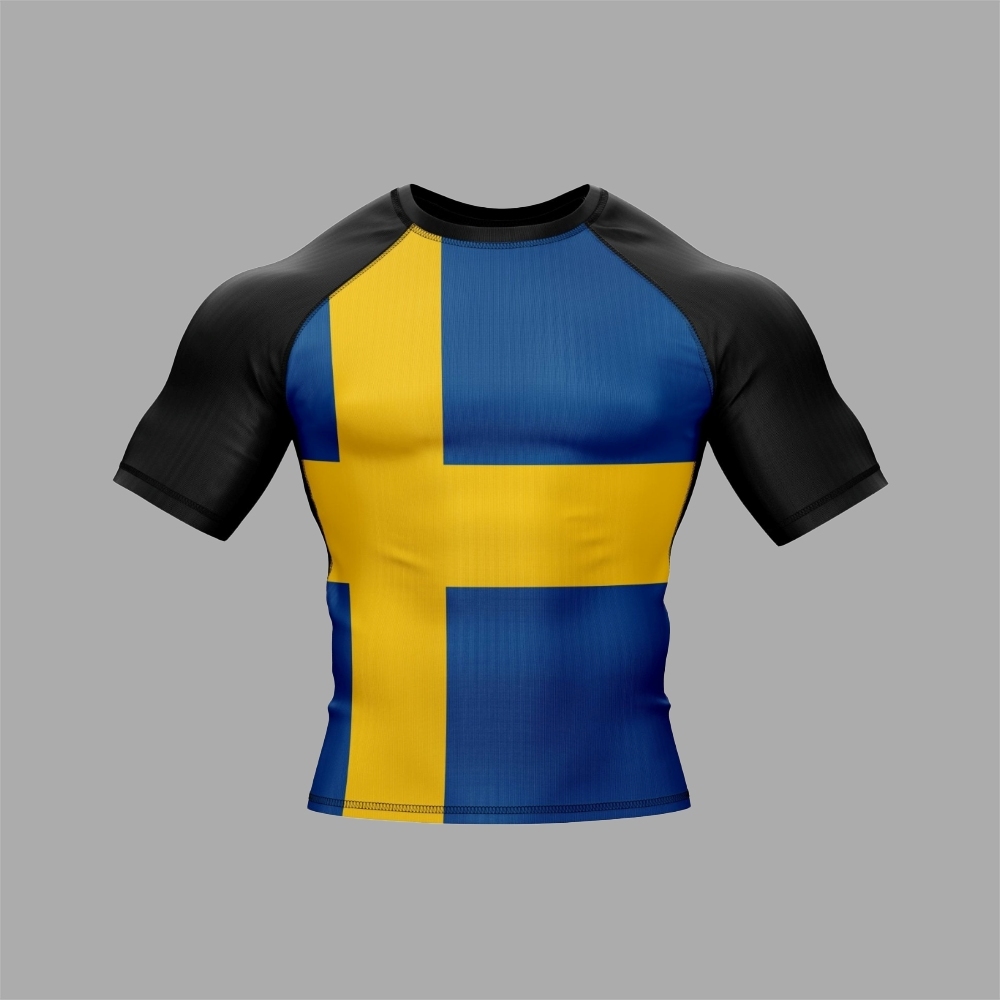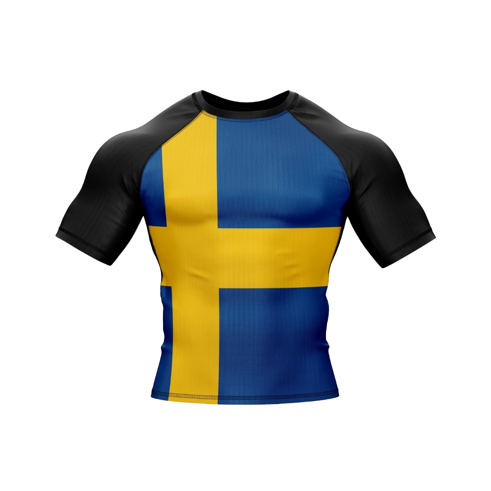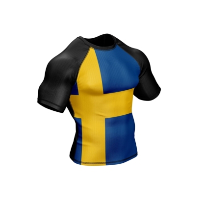 Sweden Patriotic Short Sleeve Compression Shirt Men